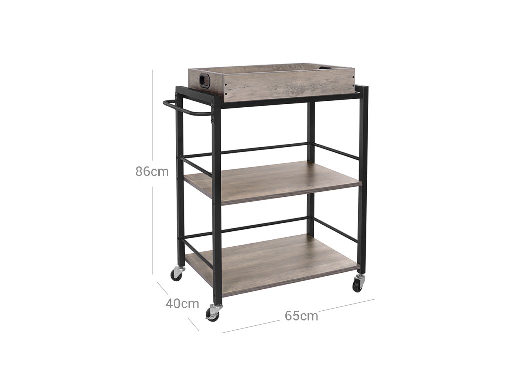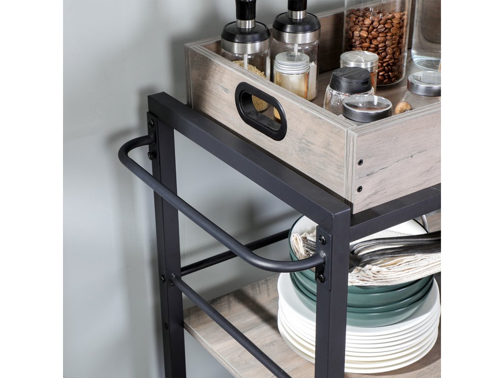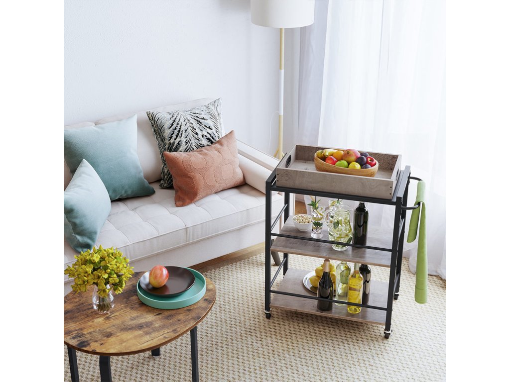 PŘÍSTUP K TÁCKU: Kdo by neměl rád snídani v posteli o líných víkendech? Zvedněte odnímatelný podnos, který unese 15 kg, a přeneste si ho k sobě; vyvýšené okraje podnosu, abyste se vyhnuli drobkům briošek rozsypaných po celém lůžku;SNAKY, ZÁKUSKY A ŠAMPÓNY: Začněte oslavu se vším, co potřebujete, na tomto vozíku s jídlem! Se 3 velkými policemi, robustním ocelovým rámem 25 x 25 mm a celkovou maximální nosností 60 kg. hosté najdou vše zdeCO ZÍSKÁTE: Kuchyňský vozík vyrobený z odolné dřevotřísky a robustního ocelového rámu. Nechte tento potravinový vozík z kolekce ALINRU, aby vám v kuchyni pomohl!| Kategorie: | Servírovací stolky |