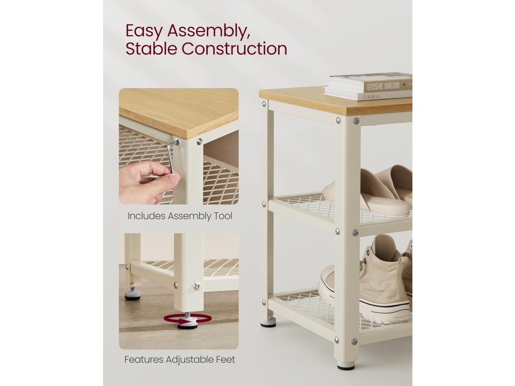 Vítejte doma Nedovolte, aby na vás hned po překročení prahu čekal prázdný a nudný vchod. Přidejte tuto lavici na boty s teplými dubovými béžovými panely a klasickou bílou ocelovou konstrukcí, zavěste nad ni věšák na kabáty a váš vchod bude mít jiný nádech.Delší, větší, úhlednější Díky šířce 73 cm jsou 2 police dostatečně prostorné pro uložení 6-8 párů bot. Na horní polici můžete také nechat pracovní tašku a další příslušenství a vytvořit si tak uklizený vstupní prostor.Built to Last Robustní lavice na boty je vyrobena z robustního ocelového rámu a dřevotřísky a unese až 90 kg; tak proč se neposadit a neudělat si pohodlí, když si zavazujete boty nebo čekáte, až se ostatní připraví?;Vyložte si starosti Nejste dobří v montáži? Nic se neděje. Přibalili jsme duo očíslovaných dílů a snadno srozumitelný návod, který vám pomůže dokončit ji krok za krokem. Stačí se jimi řídit, a než se nadějete, budete obdivovat svou novou lavičku na boty.Co dostanete Lavice na boty se 2 síťovanými policemi, ilustrovaný návod, montážní taška a fascinující design, který dodá vašemu vchodu, obývacímu pokoji a ložnici moderní nádech.| Kategorie: | Botníky |