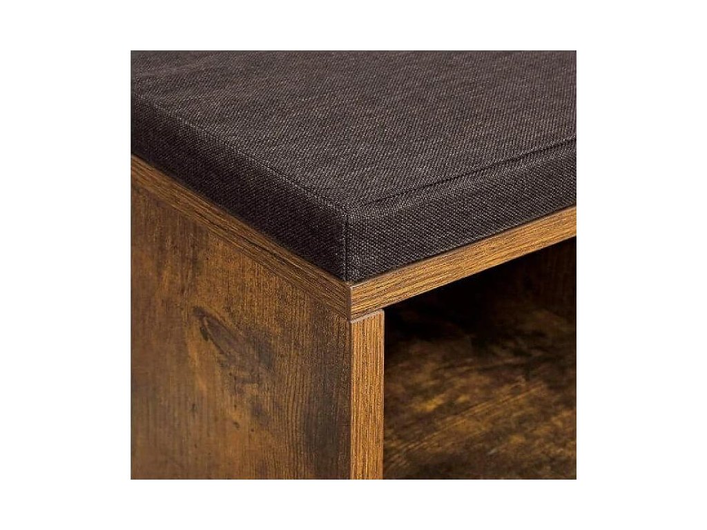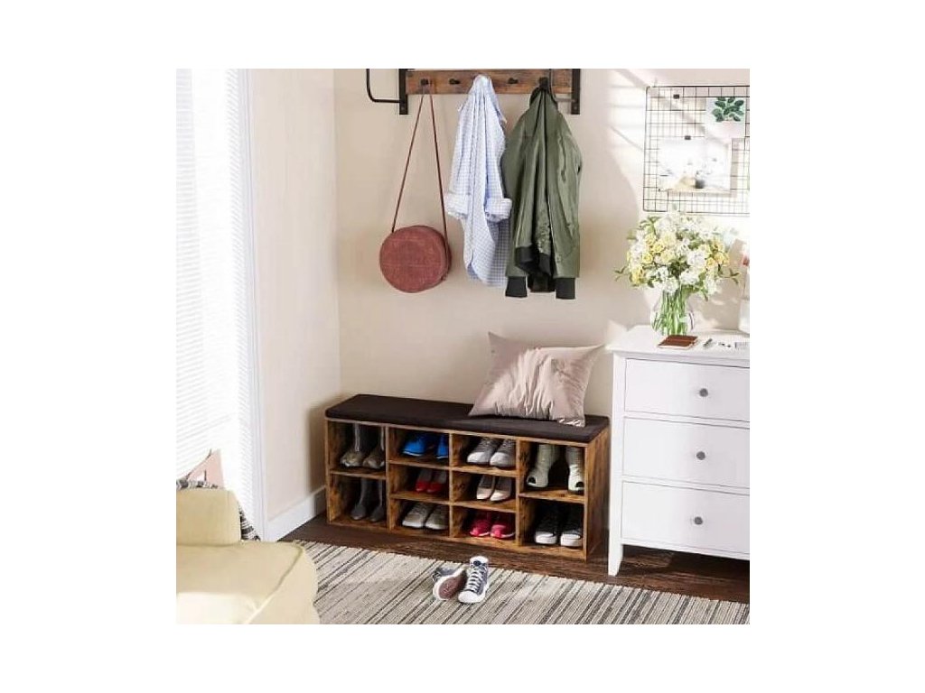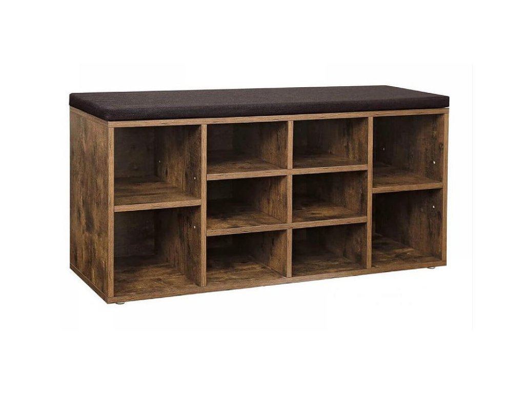 Lavice na boty, botník, skříňka na boty, 10 přihrádek, s polštářem, do předsíně, 104 x 30 x 48 cm, rustikální hnědá barva.