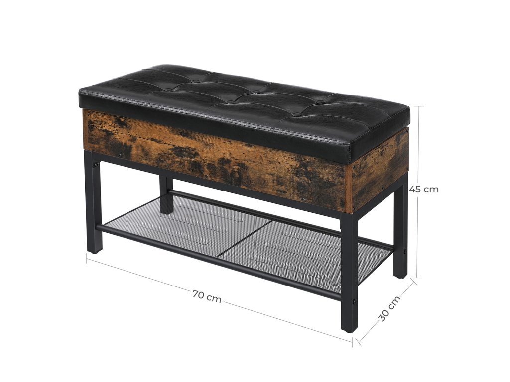 Z ČEHO JE VYROBENA TATO LAVIČKA? Pohodlná lavice s potahem z měkké syntetické kůže, elegantní botník s ocelovým rámem a stylová možnost úložného prostoru s rustikálními prvky.