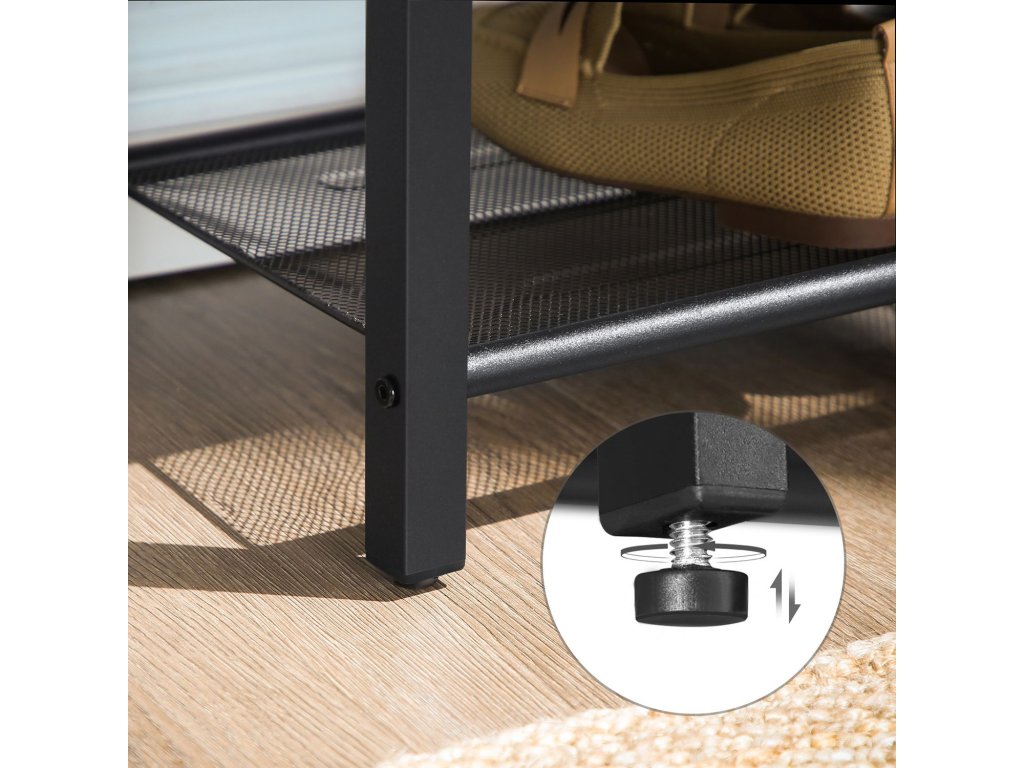 Lavice na boty, polstrovaná lavice, taburet s policí do ložnice, předsíně, obývacího pokoje, ocelový rám, snadná montáž, syntetická kůže, industriální styl, rustikální hnědá a černá.
