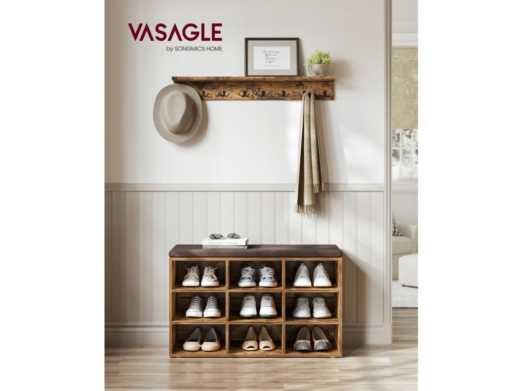 Vše v pořádku S touto lavičkou na boty ukončete nepořádek v předsíni. Má devět přihrádek o rozměrech 29,8 x 24,4 cm (D x Š), do kterých se snadno vejde 9 párů pánských bot. Přepážky v bočních přihrádkách jsou nastavitelné a odnímatelné, aby se do nich vešly boty, košíky nebo další věci.Robustní, stabilní a šetrná k podlaze Tato lavice na boty je vyrobena z kvalitní dřevotřísky o tloušťce 12 mm a unese až 136 kg, aniž by se viklala. Dodává se také se 6 podložkami na spodní straně, které chrání podlahu před poškrábáním.Pohodlný odnímatelný polštář s pratelným potahem Polštář, který zajišťuje pohodlné sezení na této lavici, je připevněn pomocí háčků a smyček a lze jej snadno odstranit. Její potah ze lněné tkaniny se zipem lze snadno odepnout a vyprat.Snadná montáž S montáží této lavice na boty s polštářem si nemusíte dělat starosti. Díky jasně označeným dílům a jednoduchým návodům ji sestavíte během chvilky.Všestranné použití Ať už ji používáte jako lavici na boty v předsíni, odkládací poličku v obývacím pokoji nebo jako lavici na konci postele v ložnici. tato úložná lavice jistě dodá módu i funkci všude, kde ji použijete.| Kategorie: | Lavice do předsíně |