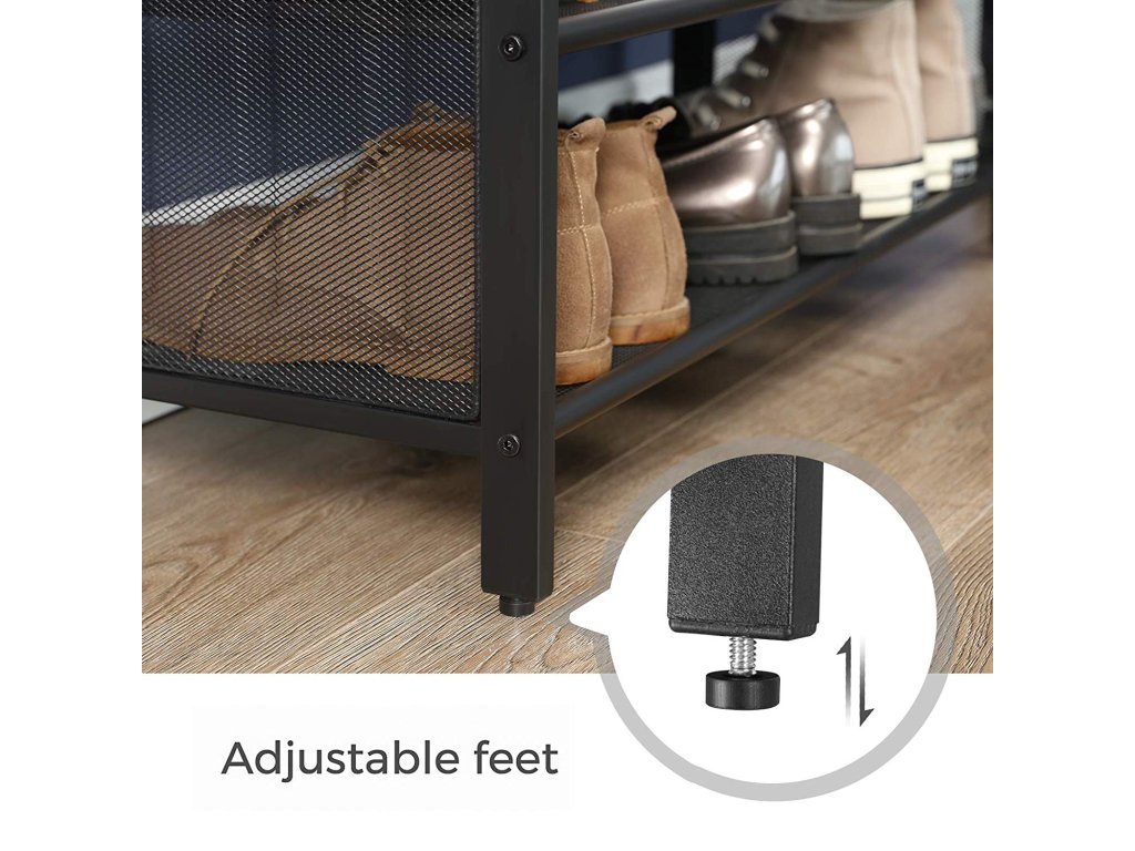 Riskněte druhý pohled: lesklá černá umělá kůže, 2 uzavřené police z ocelové síťoviny na boty. to vše je narušeno vintage povrchovou úpravou v robustním vzhledu dřeva - na této lavici/lavici na boty je toho opravdu hodně k objevování.Na příjemném kurzu: posaďte se na pohodlnou odnímatelnou podložku a beze spěchu si obujte boty. Robustní ocelová konstrukce lavice o rozměrech 80 x 30 x 48 cm vydrží zatížení až 90 kg.Sestavení, které si zamilujete: díky zvládnutelnému počtu jednotlivých dílů a přehlednému návodu se tato lavice na boty snadno sestavuje. V několika málo krocích si můžete vytvořit robustní kombinaci kovu, dřeva a umělé kůže, kterou si zamilujete.Vše v rovnováze: tento stojan na boty je vybaven nastavitelnými nožičkami a vydrží zkoušku vodováhou i na nerovných podlahách. Kromě toho se hodí i na dlažbu, parkety apod. Chráněno před poškrábánímNějaké nezodpovězené otázky? V tom případě se obraťte na náš přátelský zákaznický servis a dopřejte své předsíni, obývacímu pokoji nebo ložnici tuto útulnou lavici z naší kolekce Copadion.