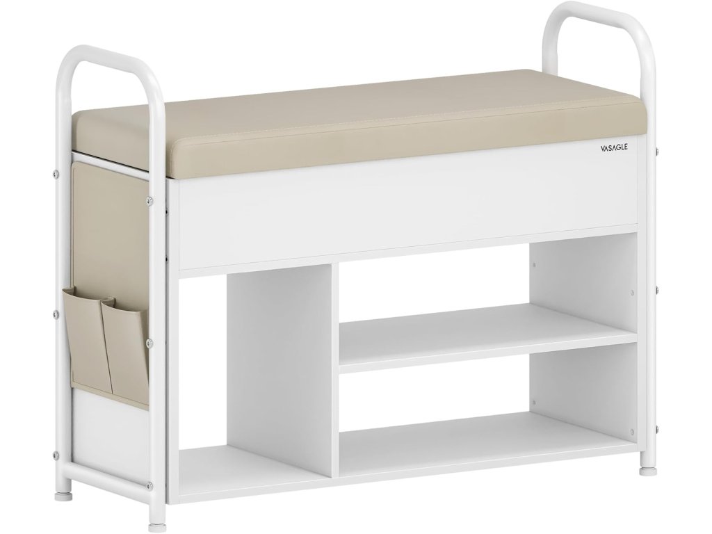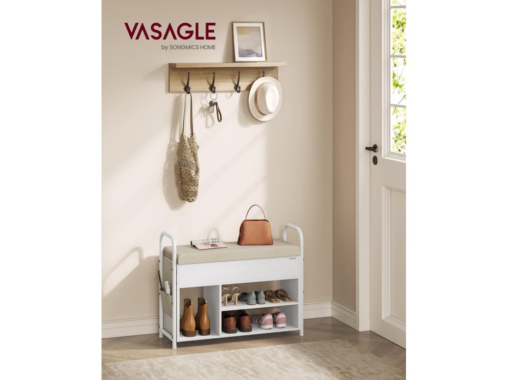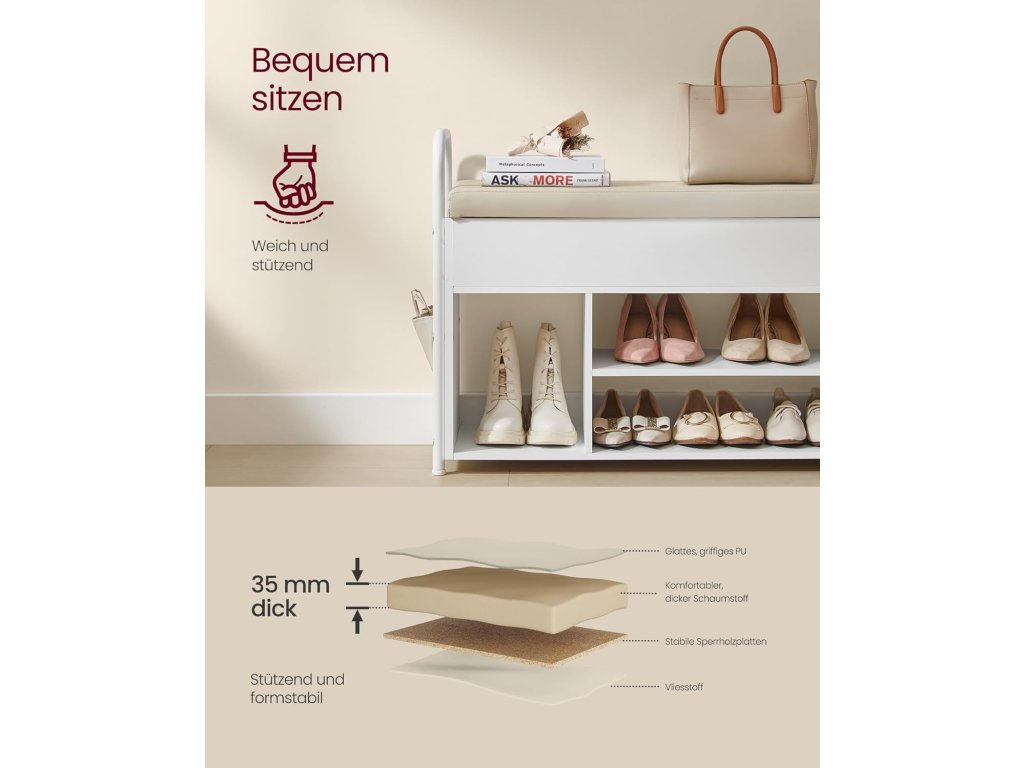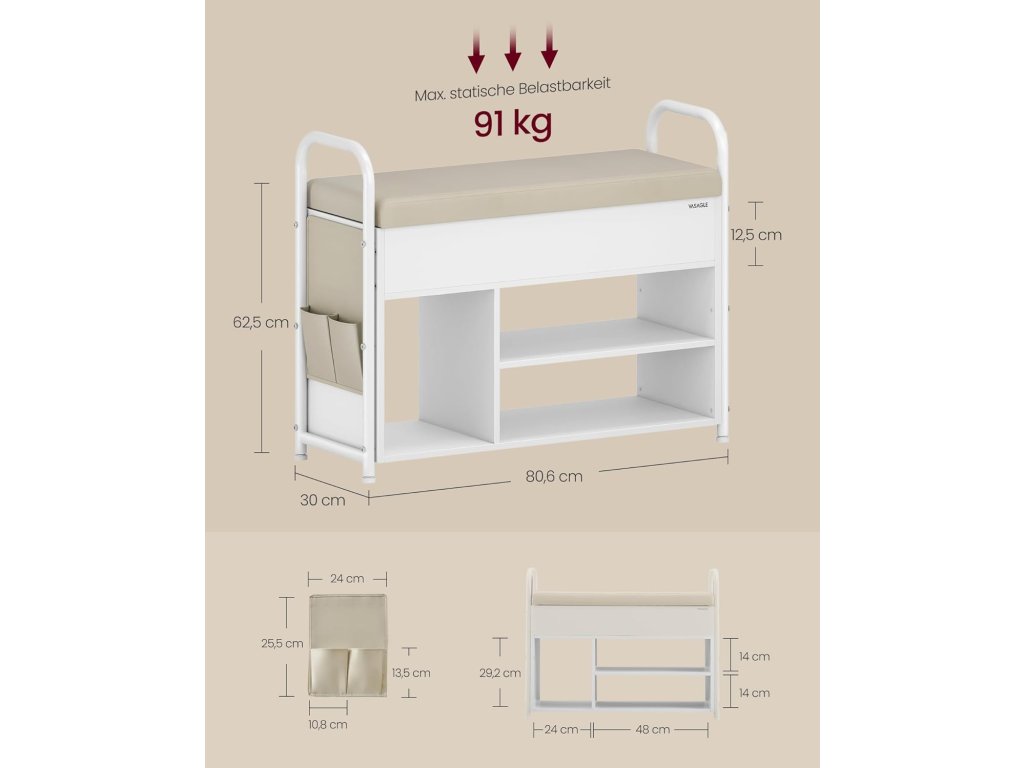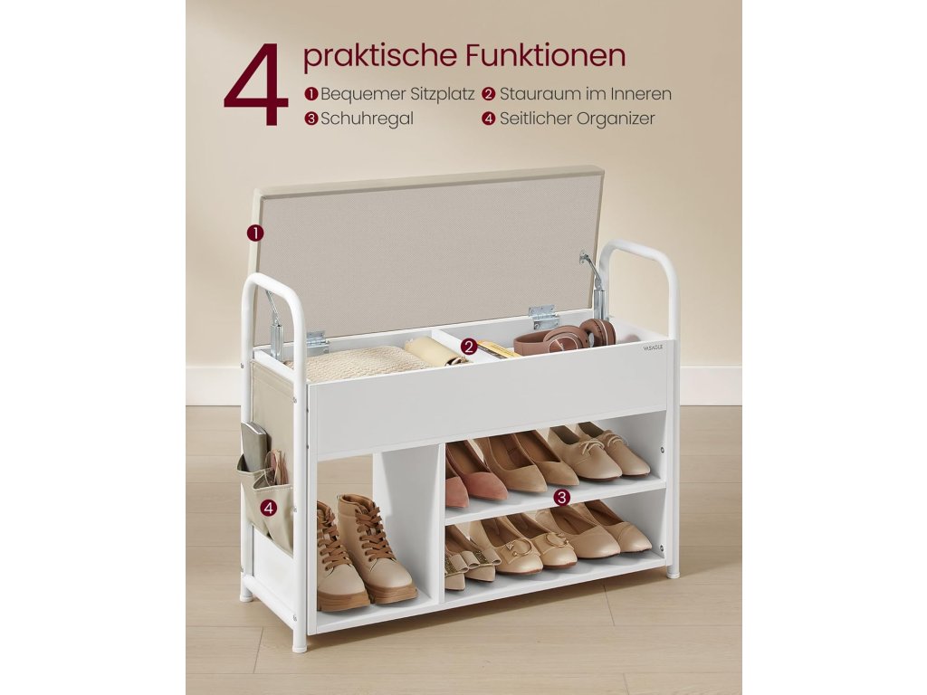 Lavice na boty se sedátkem, botník, lavice s úložným prostorem pod víkem, PU organizér, úchyty pro přenášení, do předsíně, obývacího pokoje, ložnice, bílo-béžová.
