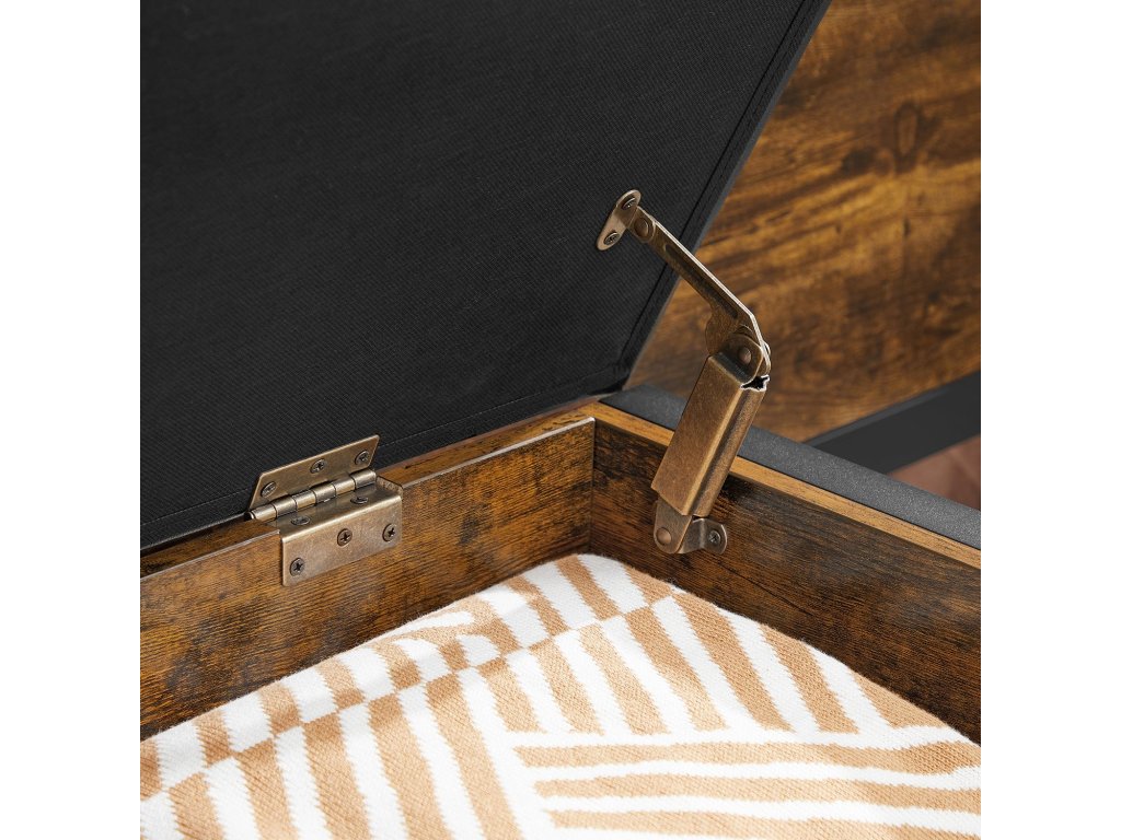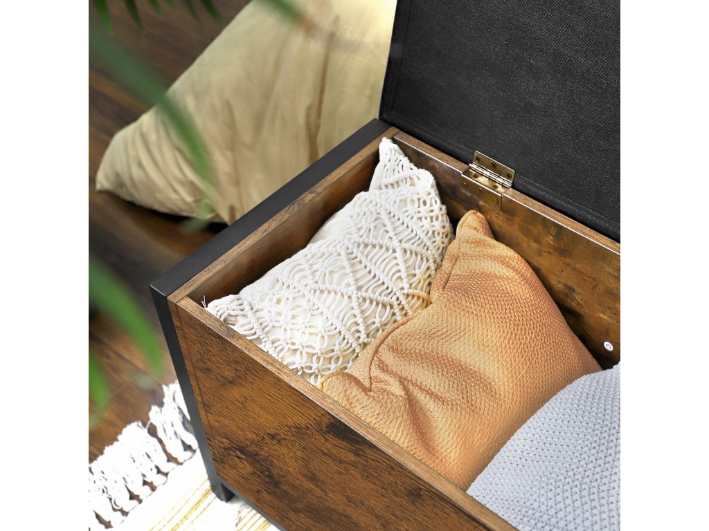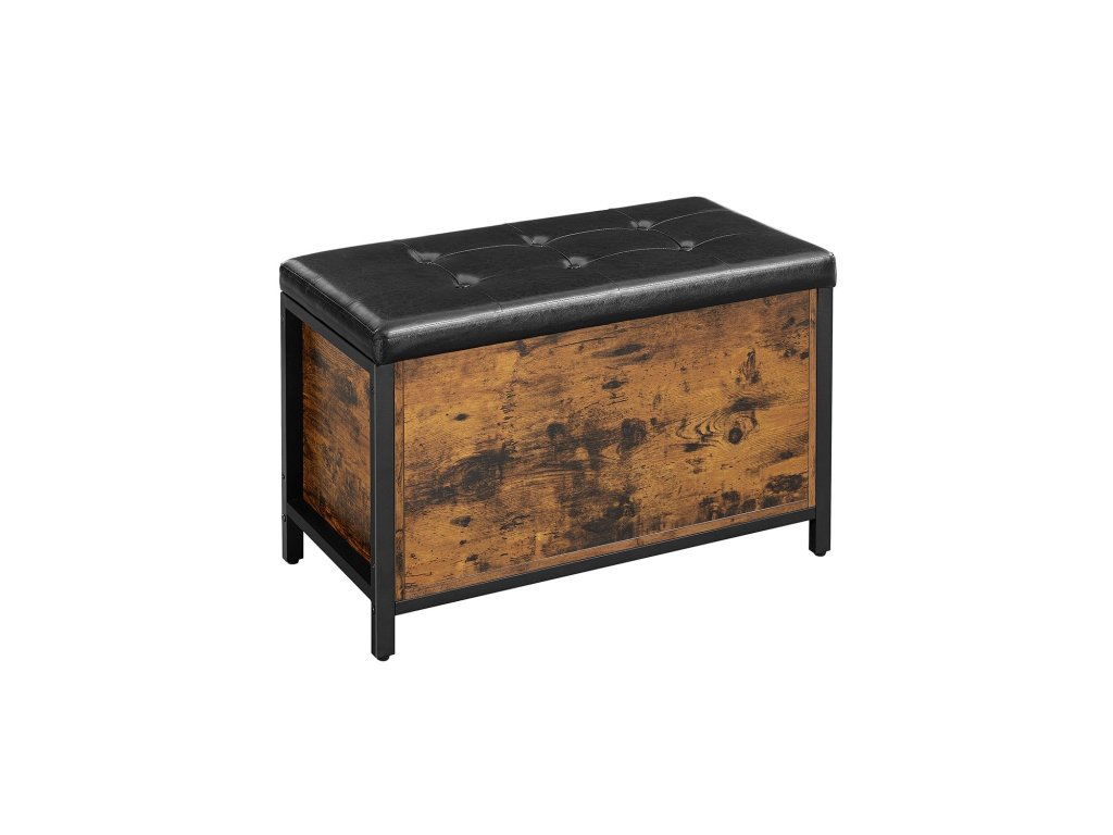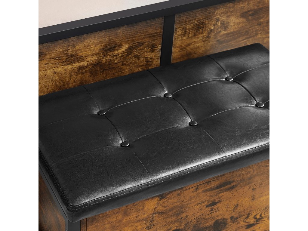Lavice s úložnou komodou, polstrovaný sedák, taburet na konec postele, předsíň, ložnice, obývací pokoj, kov, snadná montáž, průmyslový design, černá syntetická kůže, rustikální hnědá.