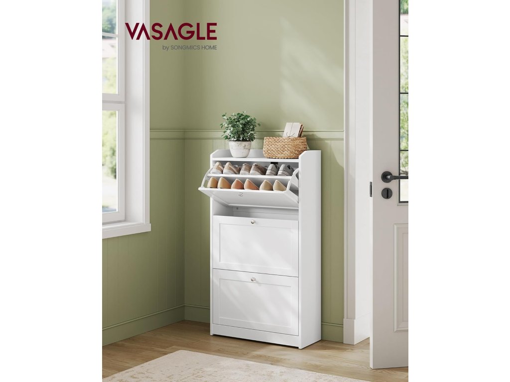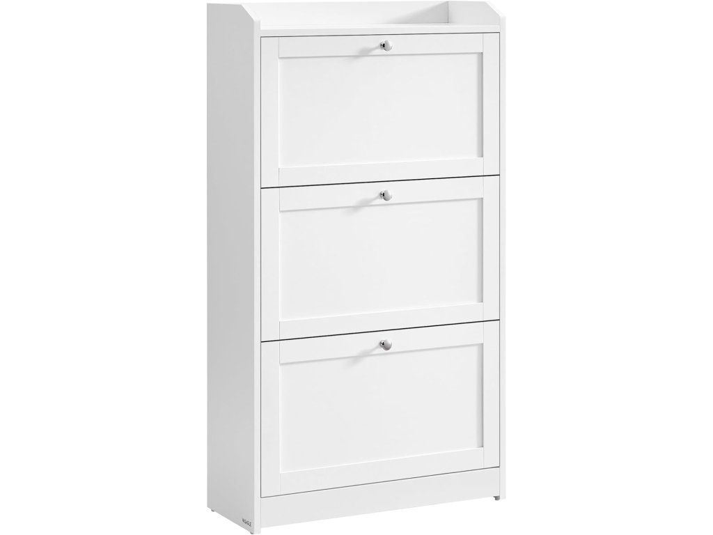 Botník se 3 klapkami, botník, úložný prostor na boty, horní deska, nastavitelná přepážka, až pro 18 párů bot, předsíň, 24 x 60 x 108 cm, bílá.