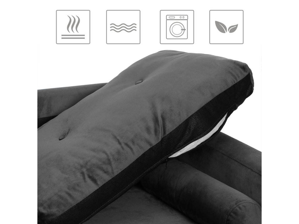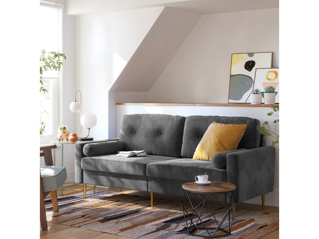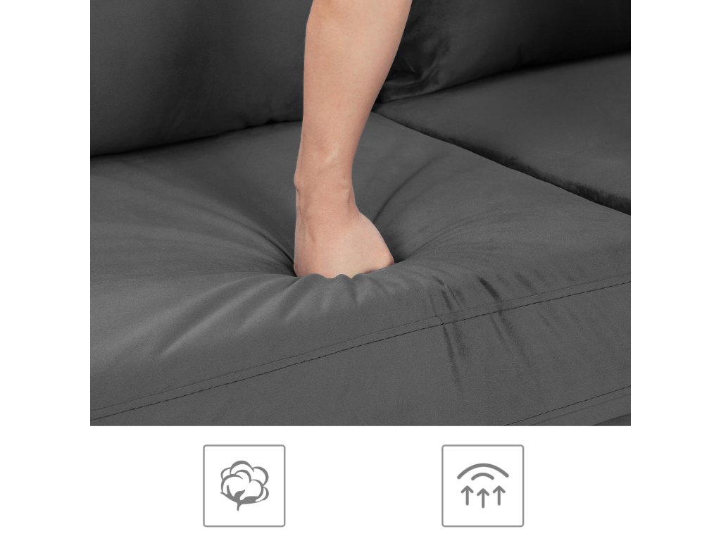 Když se samet potká s kovovými nohami: klasika a zároveň moderna. Tato moderní pohovka s luxusním polstrováním a efektními kovovými nohami dodá vašemu domovu stylový nádech. Tento šperk potažený sametem nemůže nikdo přehlédnout.Více než jen krásný vzhled: kromě pěkného vzhledu zaujme tato pohovka také svou stabilitou. Díky propracovaným detailům, jako je dřevěný rám a 4 robustní kovové nohy, může pohovka poskytovat vaší rodině pohodlí a odpočinek po dlouhá léta.Pro hledání pohodlí: Pružiny ve tvaru písmene S, silná pěnová výplň a sametová tkanina šetrná k pokožce vytvářejí ideální místo k odpočinku nejen pro vás, ale i pro vaše chlupaté přátele.Hodně pohovky, málo námahy, jasně označené díly a přehledný návod vám pomohou sestavit tuto pohovku v 7 snadných krocích. Relaxujte! Nyní si můžete užívat svou novou a pohodlnou pohovku.