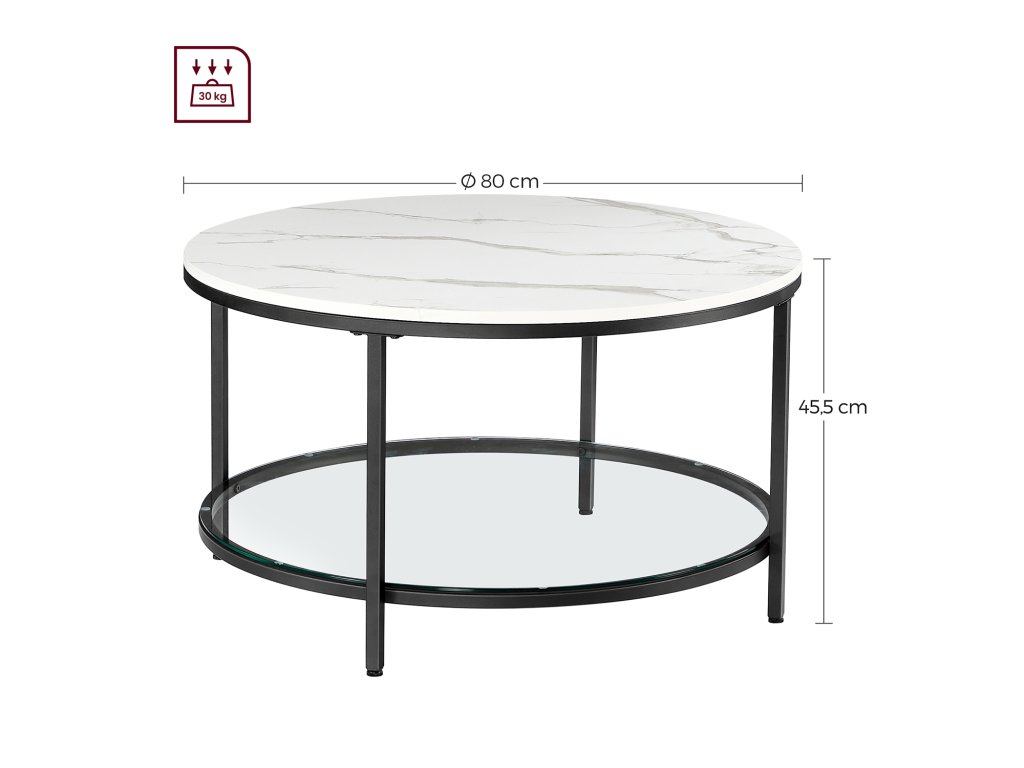 Co získáte: moderní konferenční stolek, který vás bude provázet po mnoho let, s deskou s mramorovým efektem a policí z tvrzeného skla ve spodní části, a také srozumitelný návod pro snadnou montáž.| Kategorie: | Konferenční stolky |