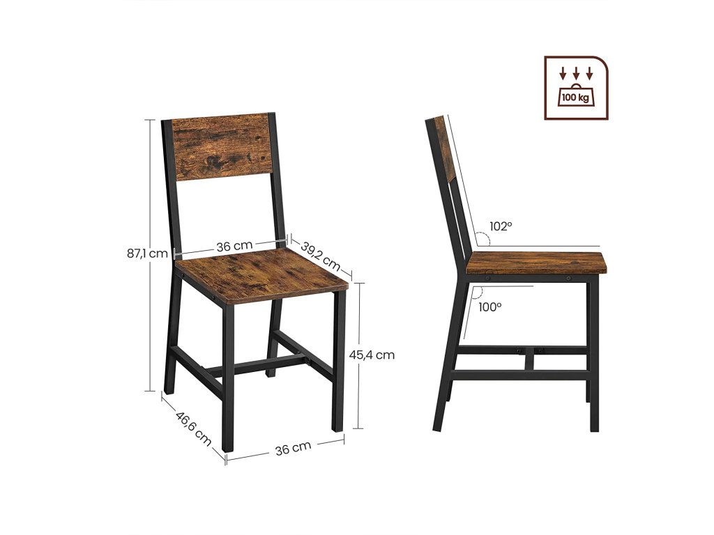 Jídelní židle, kuchyňské židle, sada 2 kusů, kovový rám, do jídelny, obývacího pokoje, kuchyně, vintage hnědá/černá barva.