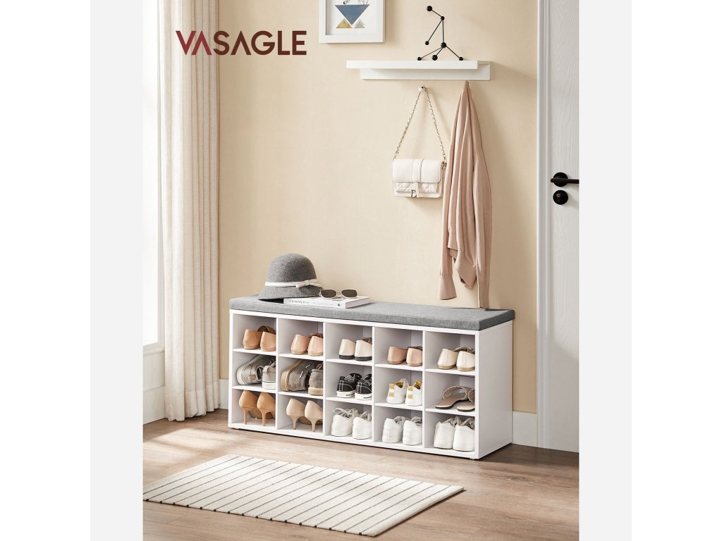 Čas na návrat: Po práci nebo zábavném dni stráveném venku potřebují vaše boty také přestávku. Proč nepoužít tento stojan na boty s 15 přihrádkami?Dopřejte si trochu pohodlí: Místo poskakování na noze nebo sezení na tvrdé stoličce se můžete pohodlně obouvat a zouvat na této polstrované lavici.MAXIMÁLNÍ STABILITA - Lavice na boty je vyrobena z dřevotřísky a má robustní konstrukci, takže vydrží až 200 kg, takže se nemusíte bát, že by se pod velkou zátěží rozkývala nebo zřítila.