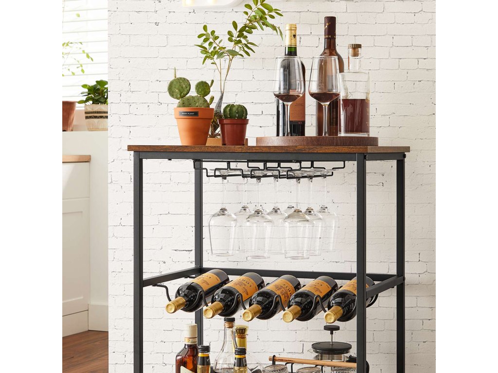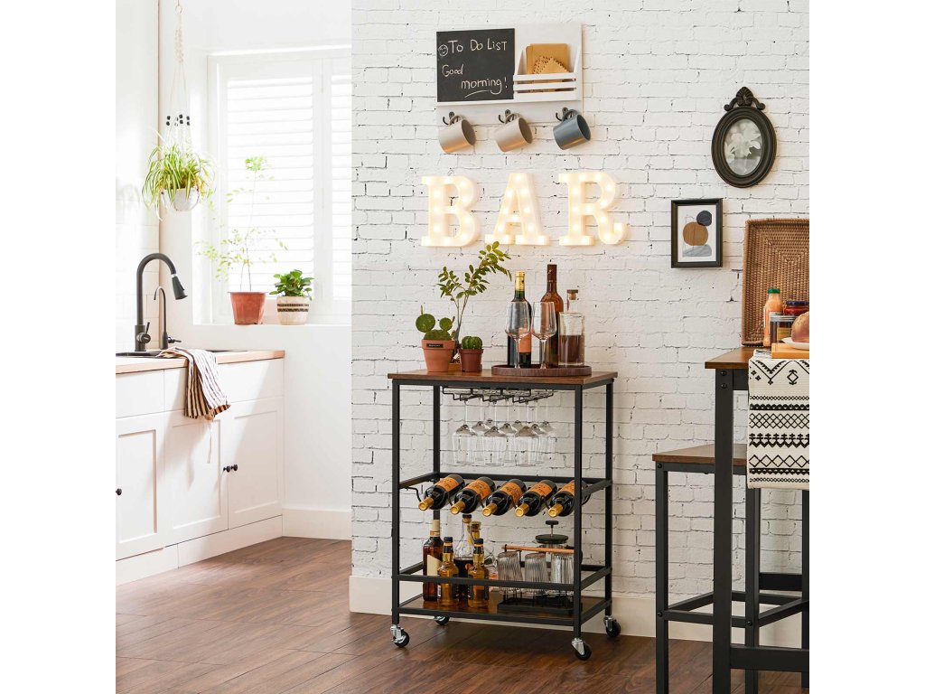Praktický pomocník v... kuchyni, obývacím pokoji, jídelně nebo na balkoně? Umístěte na tento vozík sklenice a láhve, ušetříte místo a můžete si s přáteli užít večírek nebo grilování.