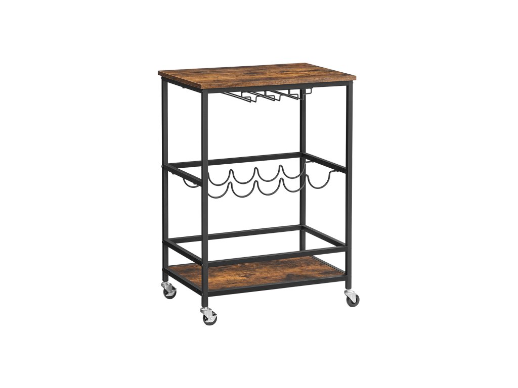 Kuchyňský vozík na kolečkách s policemi Držáky na sklenice a lahve 60 x 40 x 75 cm Průmyslový design Vintage hnědá/černá.
