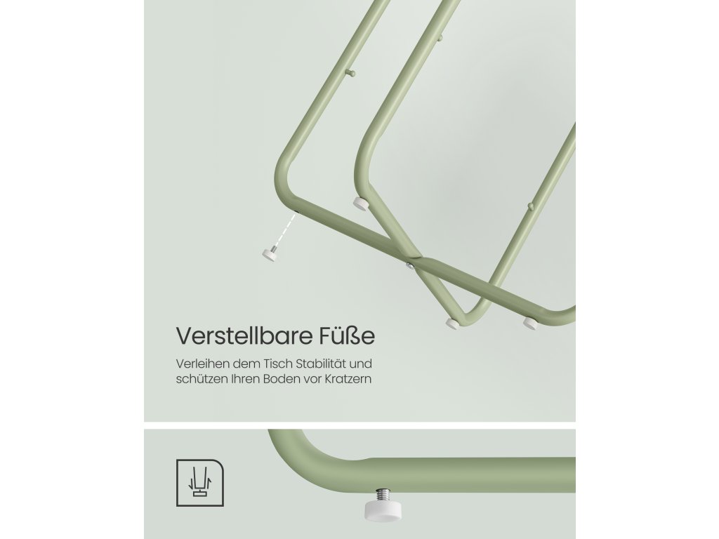 Rychlá a snadná montáž Díky jednoduché konstrukci a jasnému návodu lze tento stolek sestavit za 5-10 minut.Potěší malé prostory Koncový stolek s rozměry 17,7" x 19,7" a košem o rozměrech 15,6" x 7,2" dokonale zapadne do malých prostor, kde zabírá málo místa a zároveň nabízí dostatek úložného prostoru. Můžete ho použít jako odkládací stolek v obývacím pokoji nebo jako noční stolek v ložnici.Robustní a stabilní Robustní deska z dřevotřísky je připevněna k rámu, aniž by se kývala. Jednodílné ocelové nohy ve tvaru písmene U poskytují pevnou oporu. Nastavitelné nožičky zvyšují stabilitu a nepoškrábou podlahu.Kvalitní látkový koš Dvouvrstvý koš z polyesterové tkaniny je vizuálně atraktivní, nemačká se a neobsahuje chemické látky, takže je jeho používání bezpečné. Jeho vzhled připomínající plátno dodává tomuto kulatému stolu punc jedinečnosti.Moderní a jednoduché Tento jednoduchý kulatý stolek ve vavřínově zelené barvě s bílým krémovým košem dodá vašemu obývacímu pokoji nebo ložnici styl a snadno ho sladíte s různými doplňky. styly nábytku| Kategorie: | Odkládací stolky |