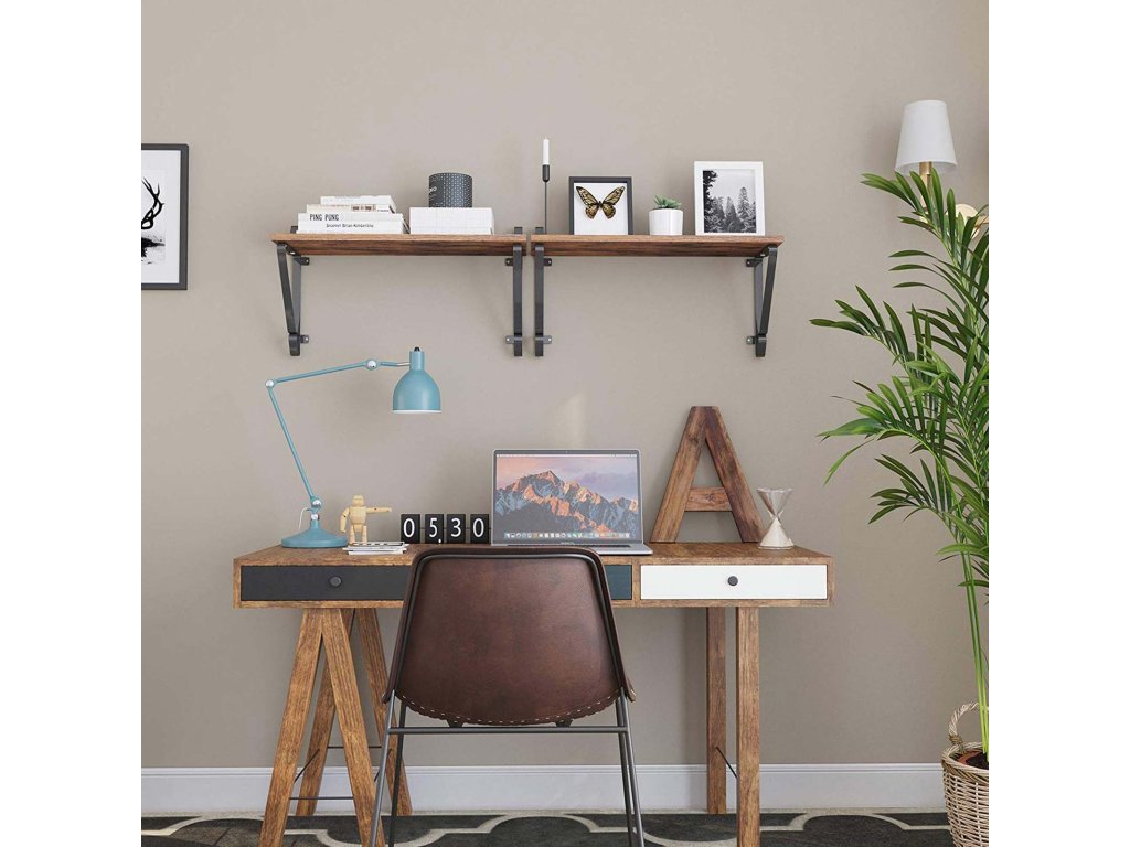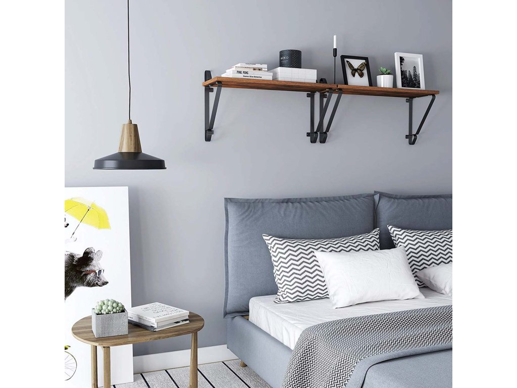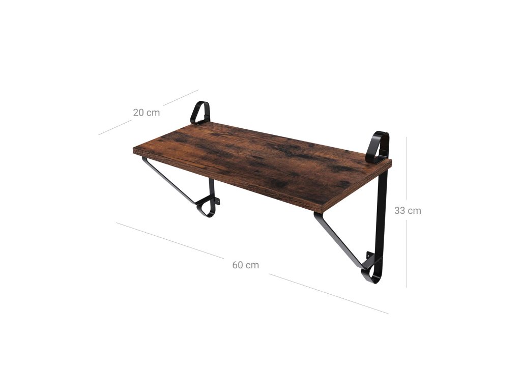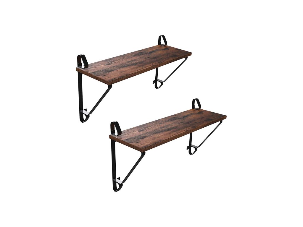 Nástěnné police, sada 2 kusů, velké plovoucí police, stabilní závěsné police do obývacího pokoje, ložnice, předsíně, 60 x 20 x 33 cm, industriální styl, rustikální hnědá a černá.