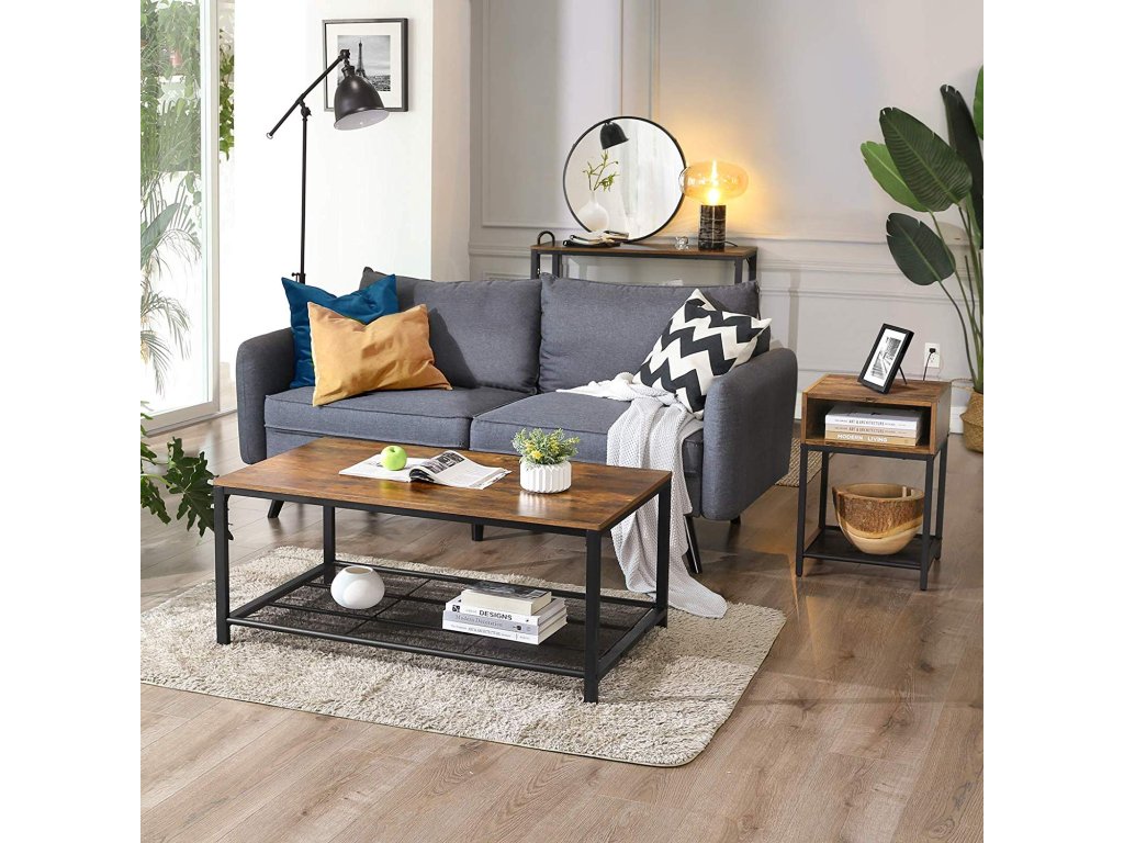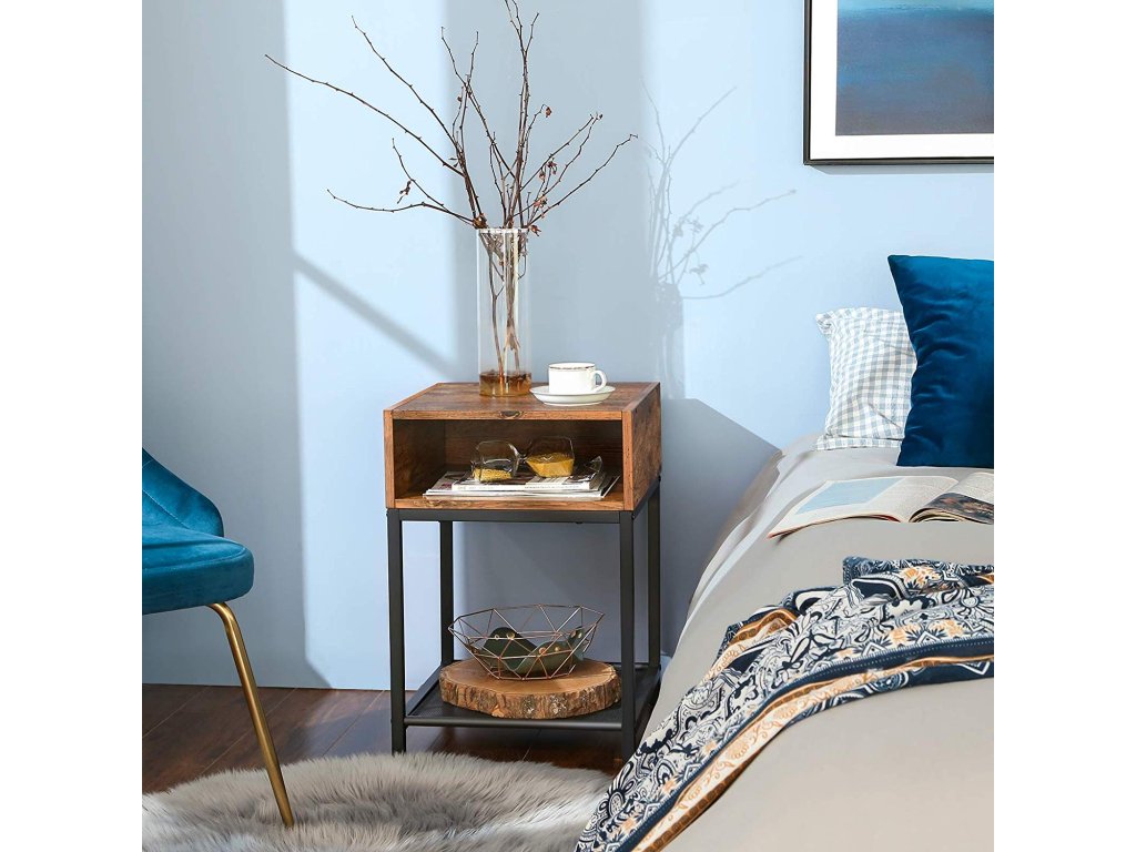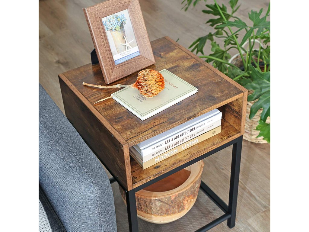3 možnosti ukládání: Tento odkládací stolek nabízí 3 různé police na knihy, televizní příslušenství, brýle nebo rostliny.Vyzkoušejte, kam se to hodí: Vyzkoušejte, kam se tento stolek hodí: jako noční stolek vedle postele, jako odkládací stolek vedle pohovky v obývacím pokoji nebo jako další police v pracovně.Montáž si zamilujete: Tento boční stolek se snadno sestavuje díky snadnému počtu jednotlivých dílů a srozumitelnému návodu. Stačí pár kroků a máte stabilní směs oceli a dřevotřísky, kterou si zamilujete.Vše v rovnováze: Tento multifunkční stolek je vybaven nastavitelnými nohami a vydrží zkoušku vodováhou i na nerovné podlaze; také vaše dlaždice, linoleum a dřevěné podlahy jsou chráněny před poškrábáním;Vdechněte život industriálnímu stylu: Vneste do svých nápadů na výzdobu rustikální a industriální styl a oživte ho tímto nočním stolkem! Tento noční stolek je součástí naší kolekce INDESTIC| Kategorie: | Odkládací stolky |