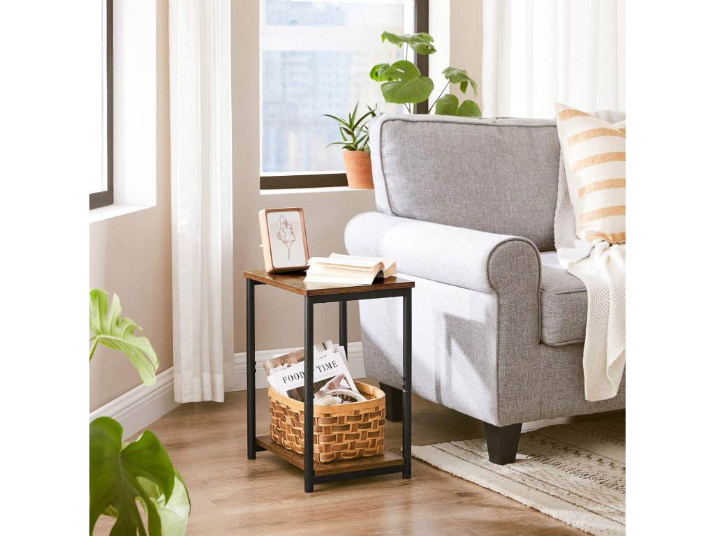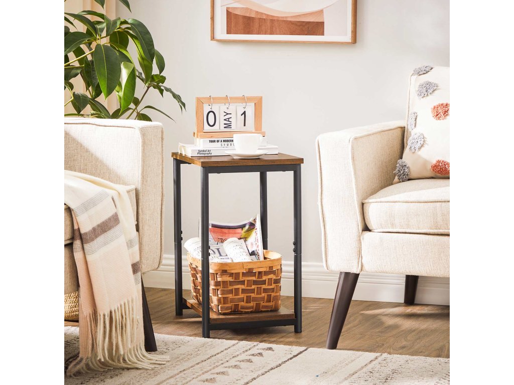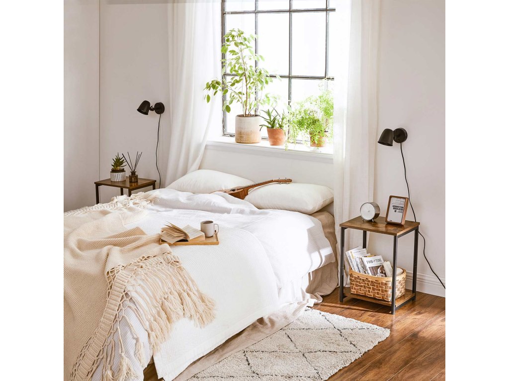 Zjednodušený, ale přesto ohromující: Tato sada 2 postranních stolků má čistý vzhled a je elegantní: dodá industriální vzhled každému prostoru, od obývacího pokoje až po ložnici. nenápadný design a zároveň působivý výraz díky teplému rustikálnímu hnědému odstínu a matnému černému ocelovému akcentu.Úspora místa a zároveň prostornost: rozměry 30 x 38,5 x 50 cm každý odkládací stolek zabírá málo místa a zároveň slouží jako odkládací prostor se dvěma patry - na horní si můžete dát šálek heřmánkového čaje a na spodní košík, abyste měli potřebné věci po ruce.Pevný a přitom stabilní: 2 ocelové boční rámy zvedají a vyztužují 2 dřevotřískové desky a vytvářejí pevnou konstrukci, která zůstane na svém místě i po naložení 20 kg předmětů na každé úrovni. Drobné nerovnosti v podlaze? Nožičky jsou nastavitelné, aby se vyrovnaly.Jednoduché a přesto stupňovité: Díky zjednodušeným bočním rámům, očíslovaným dílům a jasnému návodu dokončíte montáž v pouhých 4 krocích, což vám zabere jen málo volného času. Nyní si vezměte dálkový ovladač, pití a občerstvení a užijte si příjemný filmový večer.Co získáte: Pár stolků se štíhlou postavou, pevnou konstrukcí a jednoduchou montáží, které poslouží i jako boční stolky vedle gauče, vstupní stolky v předsíni. nebo noční stolky vedle postele| Kategorie: | Odkládací stolky |