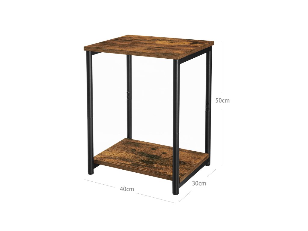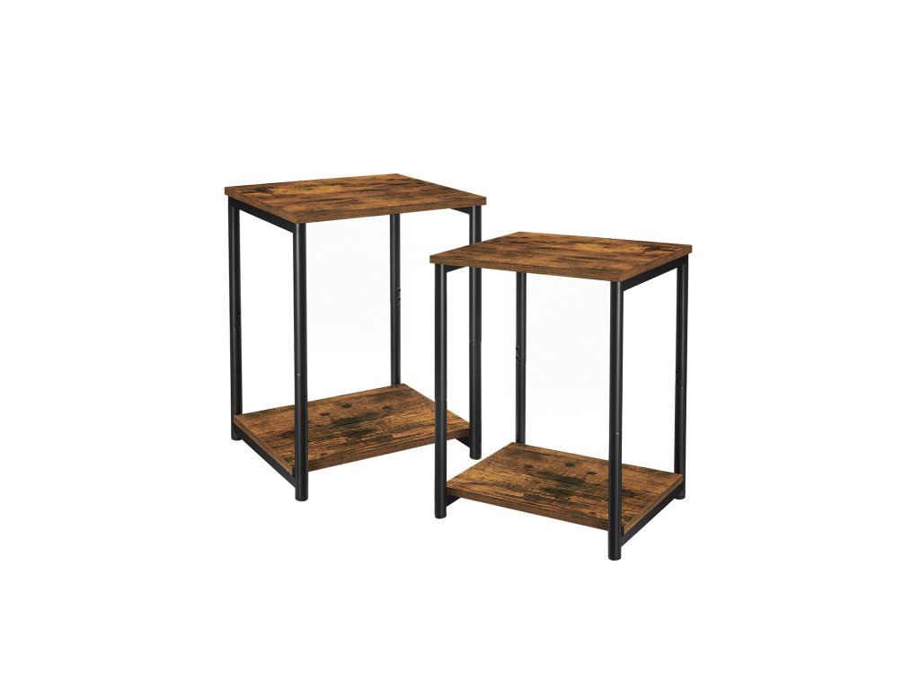 Noční stolky, sada 2 nočních stolků, stolky s úložnou policí, ocelový rám, do obývacího pokoje, obývacího pokoje, ložnice, industriální, rustikální hnědá a černá.