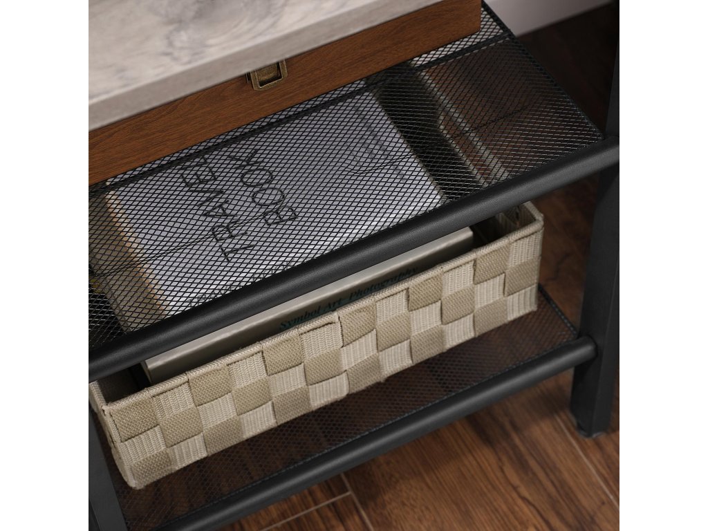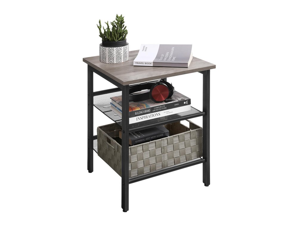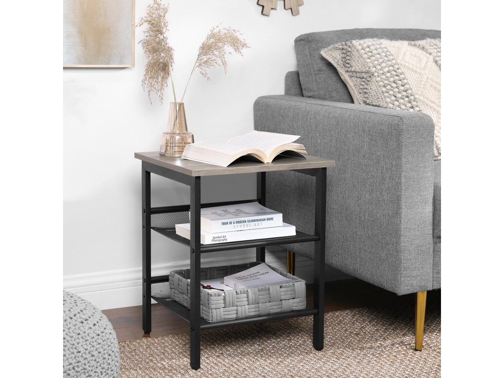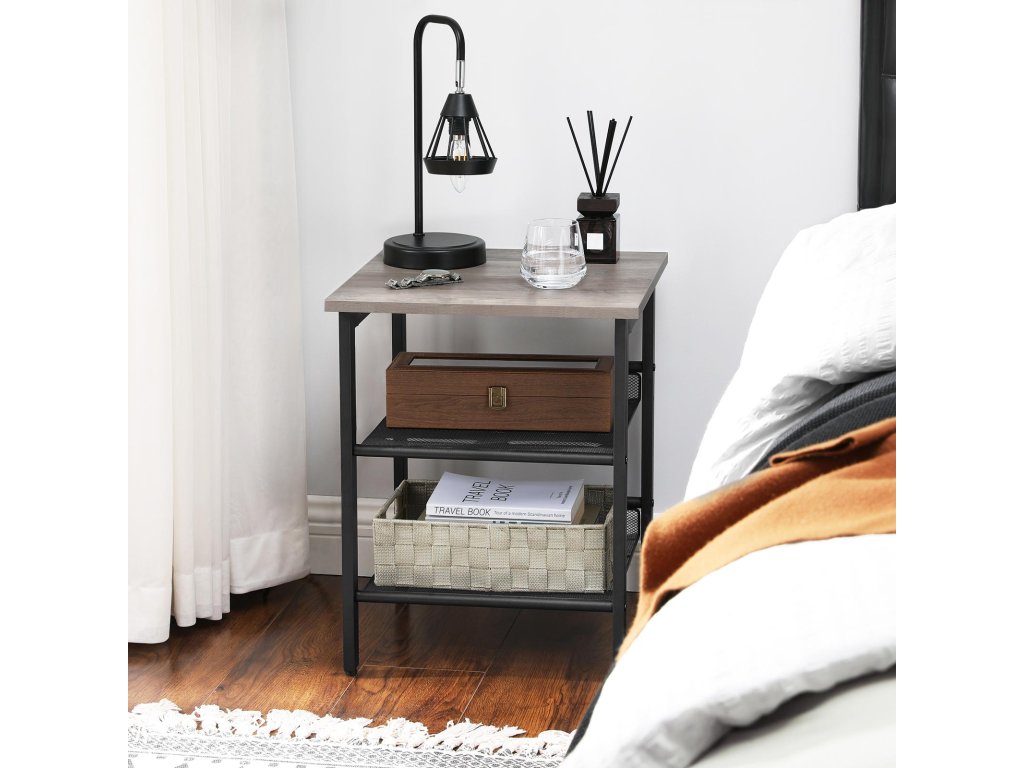 Odkládací stolek, noční stolek, koncový stolek se 2 nastavitelnými policemi ze síťoviny, snadná montáž, průmyslový do obývacího pokoje, ložnice, stabilní ocelový rám, béžová a černá.