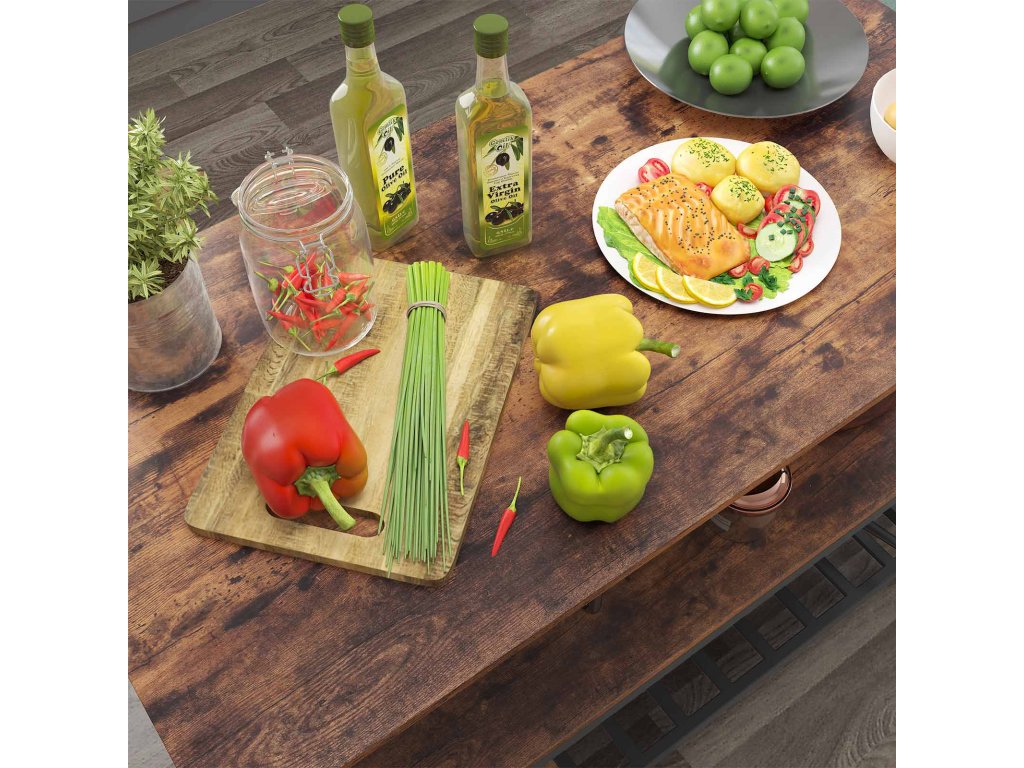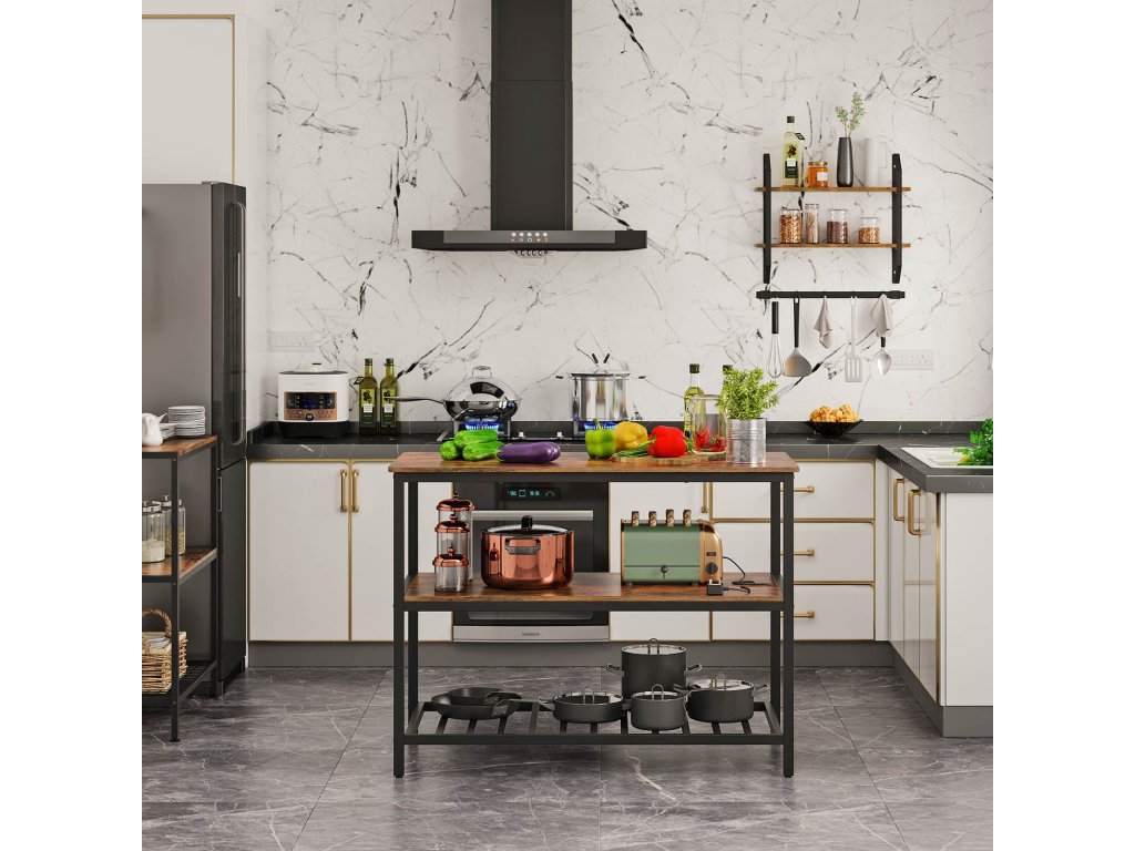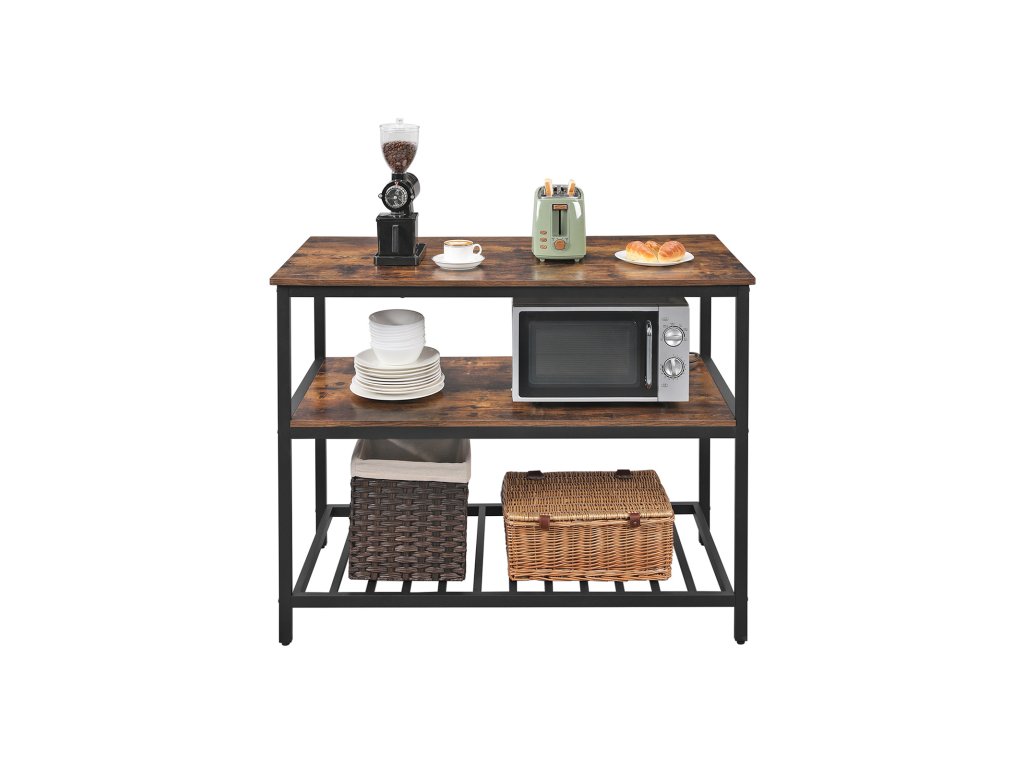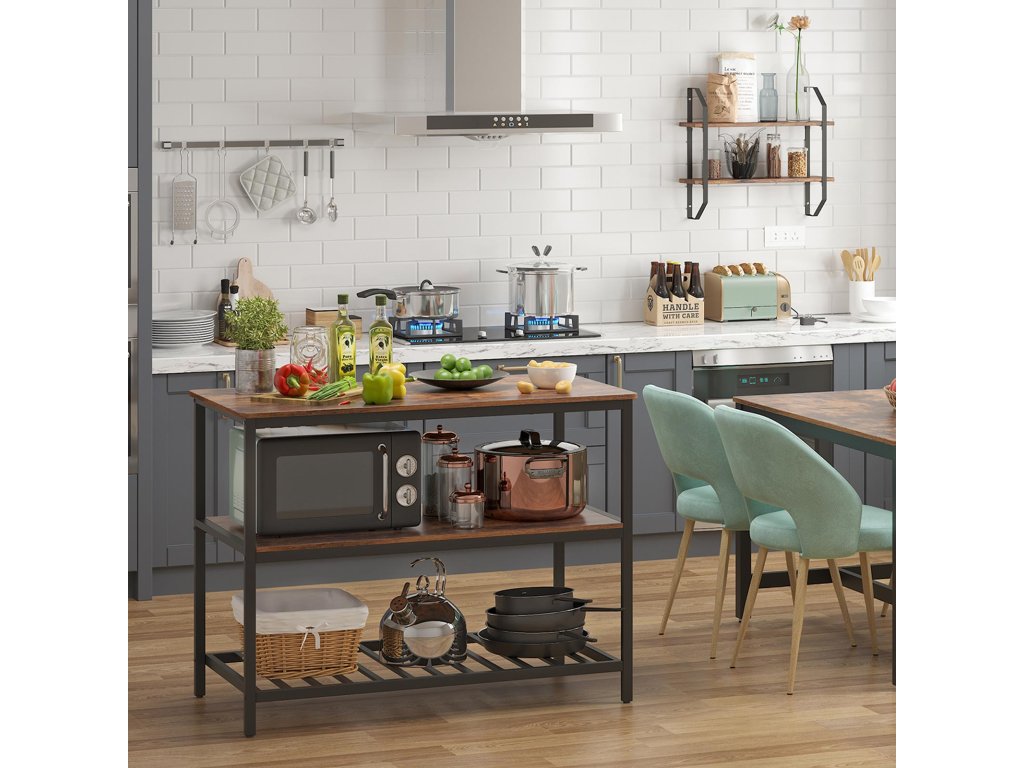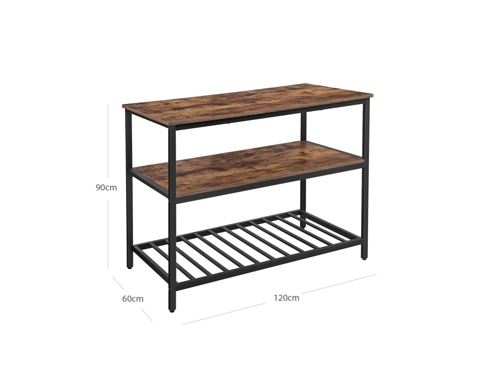 Pekařský regál, kuchyňský ostrůvek s velkou pracovní deskou, stabilní ocelová konstrukce, 120 x 60 x 90 cm, průmyslový kuchyňský regál, snadná montáž, rustikální hnědá a černá.