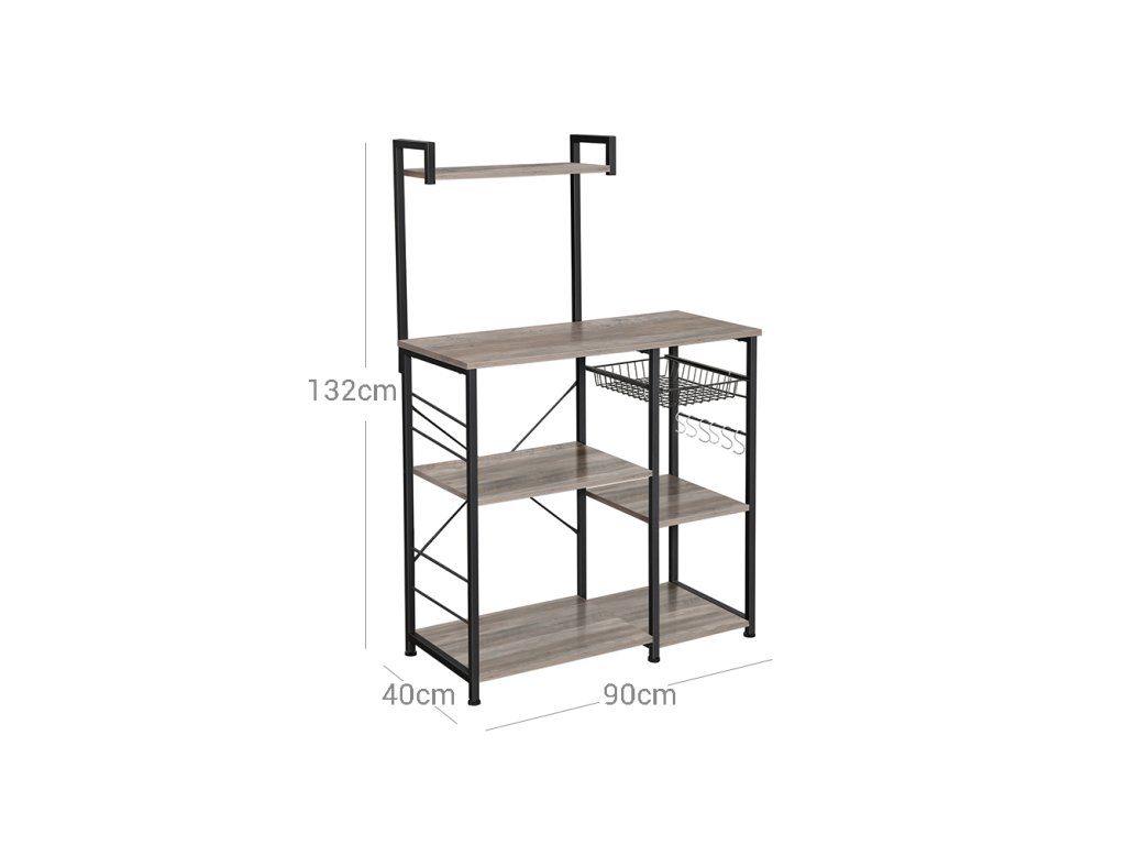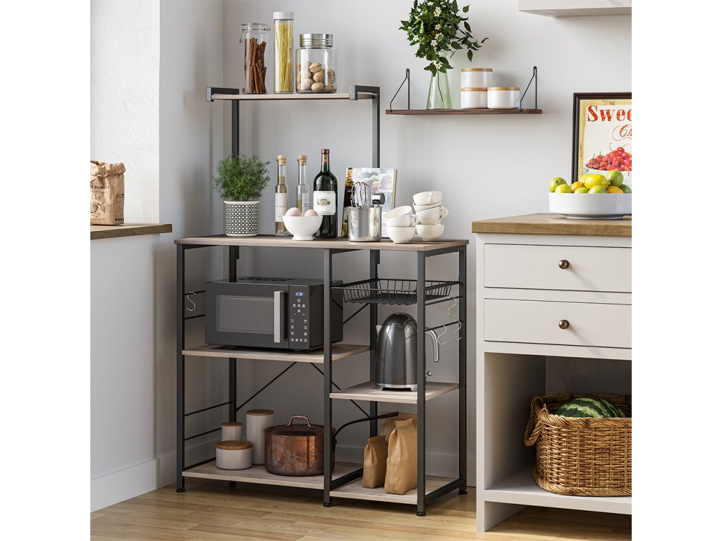 ZACHRÁNCE ÚLOŽIŠŤ: Už nemáte místo ve spíži? Tento stojan na pečivo s úložným prostorem vám pomůže; s bohatými policemi, 6 S-háčky a drátěným košem budete mít místo na přípravu jídla, pánve, nádobí, nápoje, koření, ručníky a další věci;STABILITA SERIÁLU: Tento stabilní stojan na mikrovlnné trouby, vyrobený z odolné dřevotřísky a robustního kovového rámu s trubkami o rozměrech 20 x 20 mm, nabízí oporu, kterou vaše kuchyňské dobroty potřebují; nastavitelné nožičky na dně pomáhají udržet vše na místě i na nerovných podlahách;JEDNODUCHOST NASTAVENÍ: Chcete mít tento pekáč s policemi sestavený ještě před vytažením pizzy z trouby? Díky očíslovaným dílům a snadným pokynům jej lze sestavit za 30 minut nebo méně.SNAZZY STYL: Pokud chcete dodat své kuchyni styl, ale nechcete si vybírat peníze na kompletní rekonstrukci. pak je tento stojan na pečivo kombinující béžovou a matnou černou dokonalým řešením, které dodává okouzlující styl.CO ZÍSKÁTE: Stojan na mikrovlnnou troubu s policemi z kolekce VASAGLE ALINRU, 6 S-háčků na zavěšení předmětů a stylový způsob, jak uspořádat všechny kuchyňské potřeby.| Kategorie: | Regály a poličky |