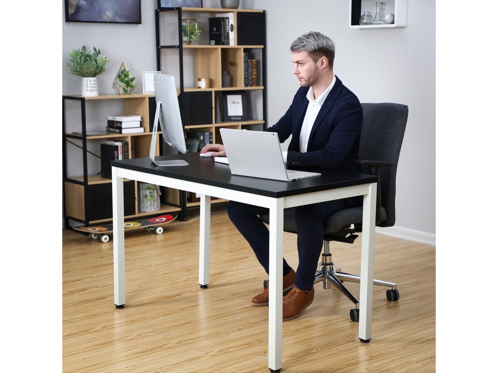 Počítačový stůl, psací stůl s velkou pracovní deskou, stabilní kancelářský stůl, moderní jídelní stůl, domácí kancelář, snadná montáž, 120 x 60 x 76 cm (d x š x v), černá, bílá.