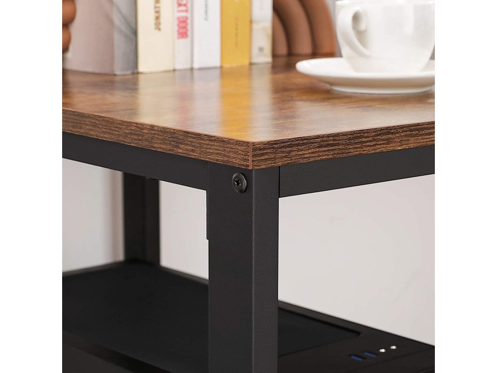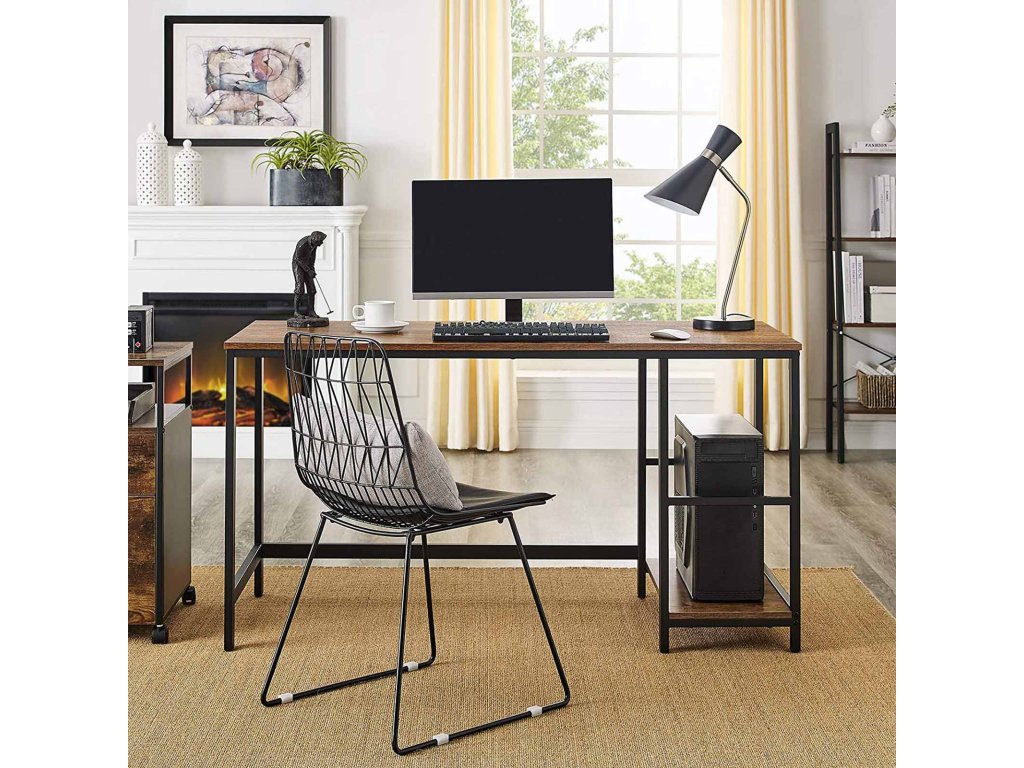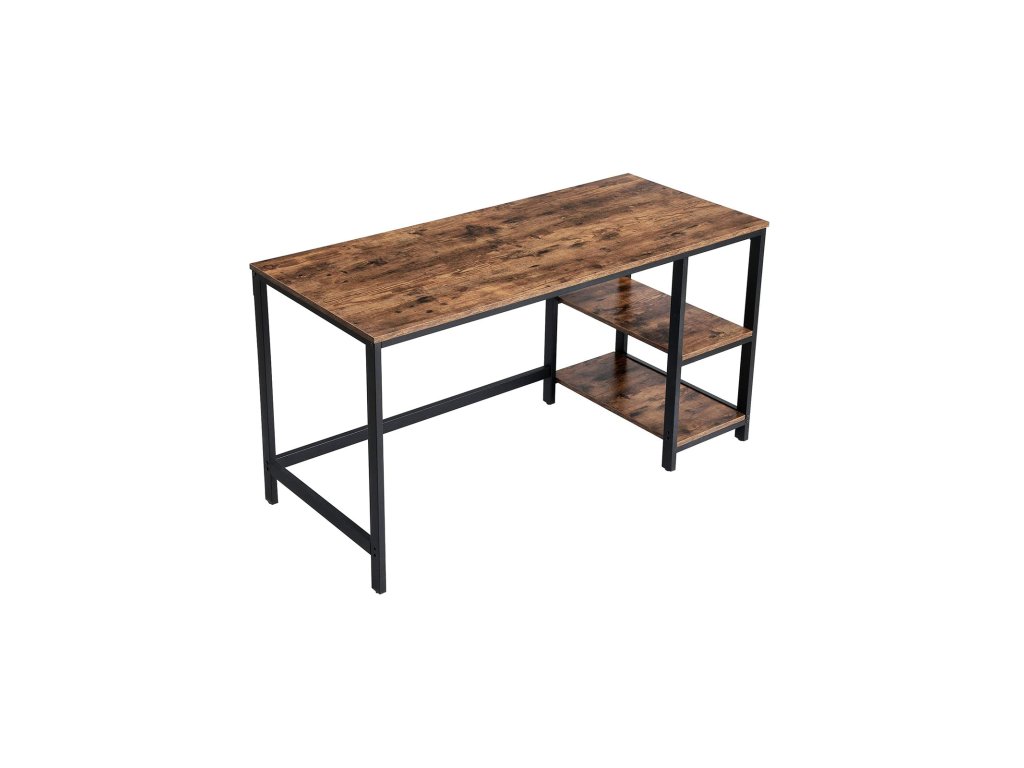 Počítačový stůl, psací stůl se 2 policemi vlevo nebo vpravo, pracovní stůl do kanceláře obývacího pokoje, ocelový rám, industriální, rustikální hnědá a černá.