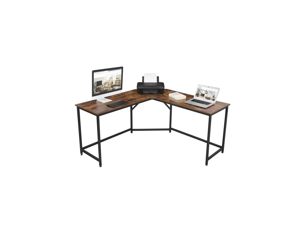 Počítačový stůl ve tvaru L, rohový stůl pro studium, domácí kancelář, hraní her, úspora místa, snadná montáž, průmyslový design, rustikální hnědá a černá.