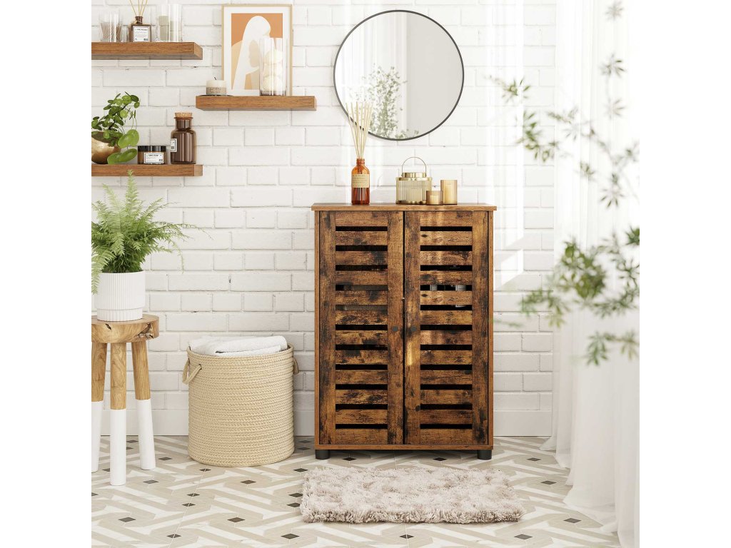 Co získáte: Koupelnová podlahová skříňka se 2 žaluziovými dvířky pro čistý prostor bez nepořádku, který vytváří industriální estetiku, jež spojuje vkus a funkčnost.| Kategorie: | Koupelnový nábytek |