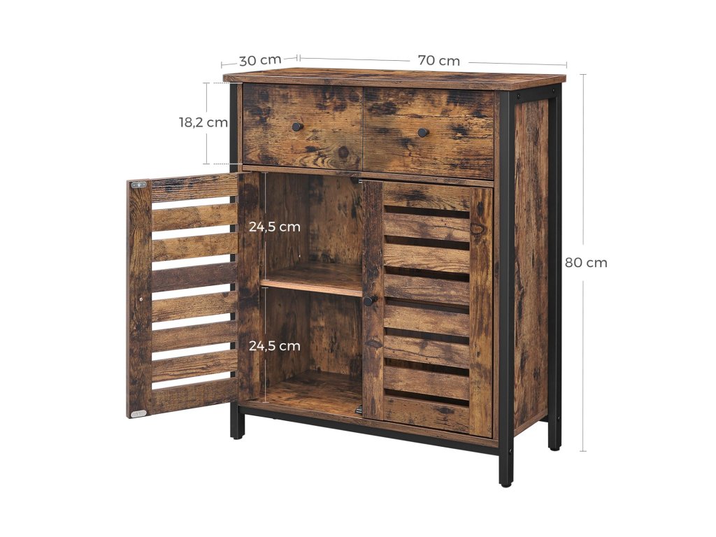 Podlahová skříňka, volně stojící skříňka s 1 zásuvkou a policí, kuchyňská skříňka, žaluziové dveře, do obývacího pokoje, předsíně, kanceláře, ložnice, rustikální hnědá.