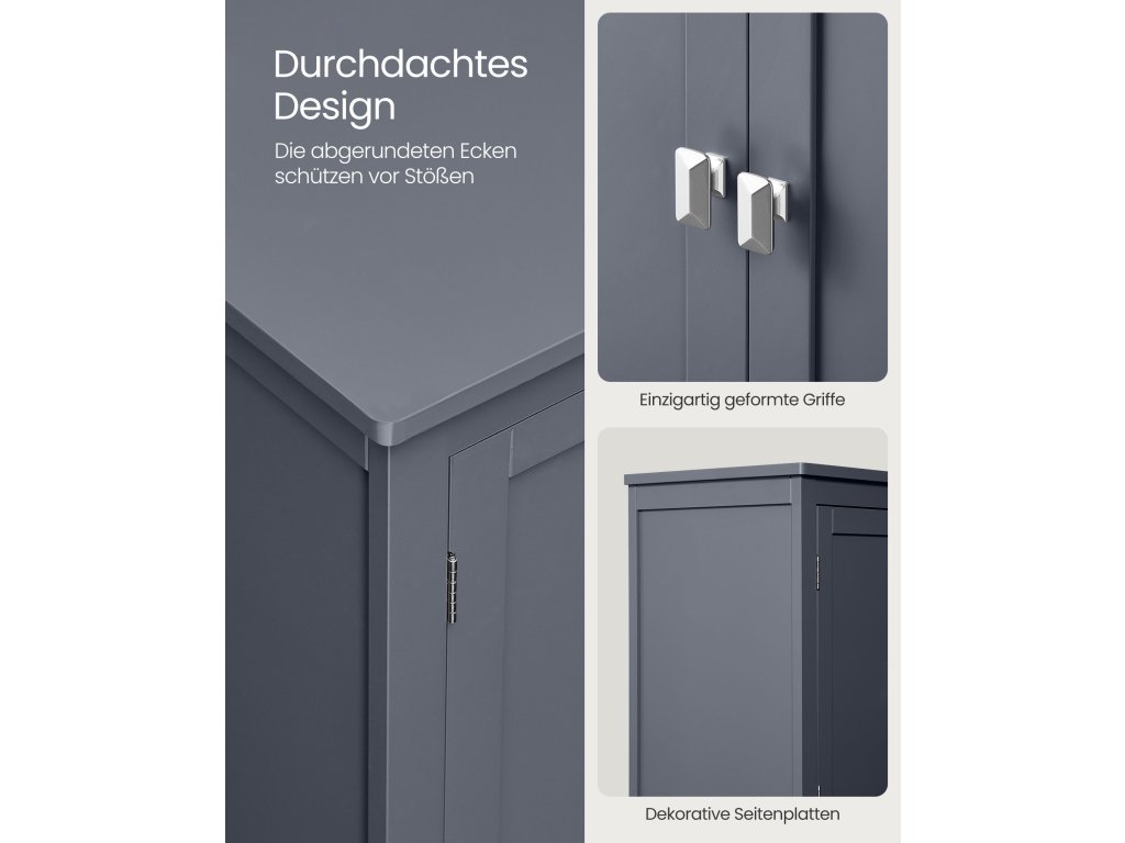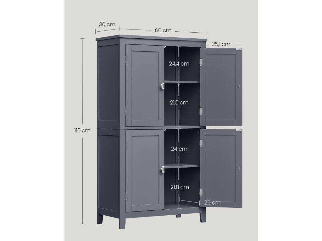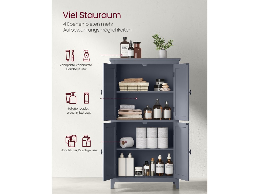 Podlahová skříňka do koupelny, koupelnová skříňka, volně stojící skříňka se 4 dveřmi, nastavitelné police, 11,8 x 23,6 x 43,3 palce, břidlicově šedá.