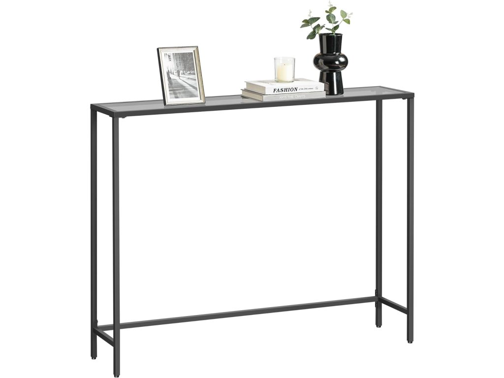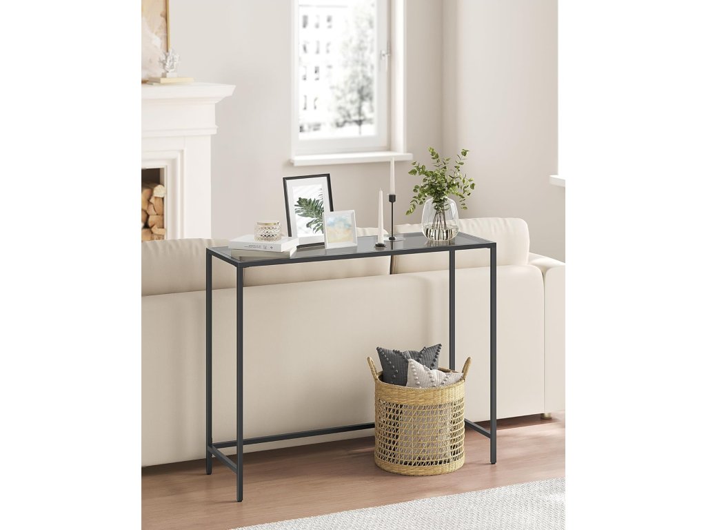 Konzolový stolek, deska z tvrzeného skla, robustní a stabilní rám, nastavitelné nohy, do obývacího pokoje, předsíně, inkoustově černá a břidlicově šedá.