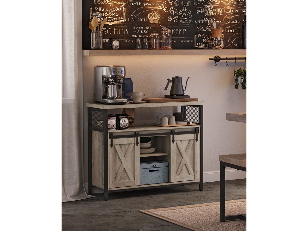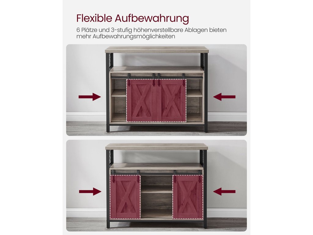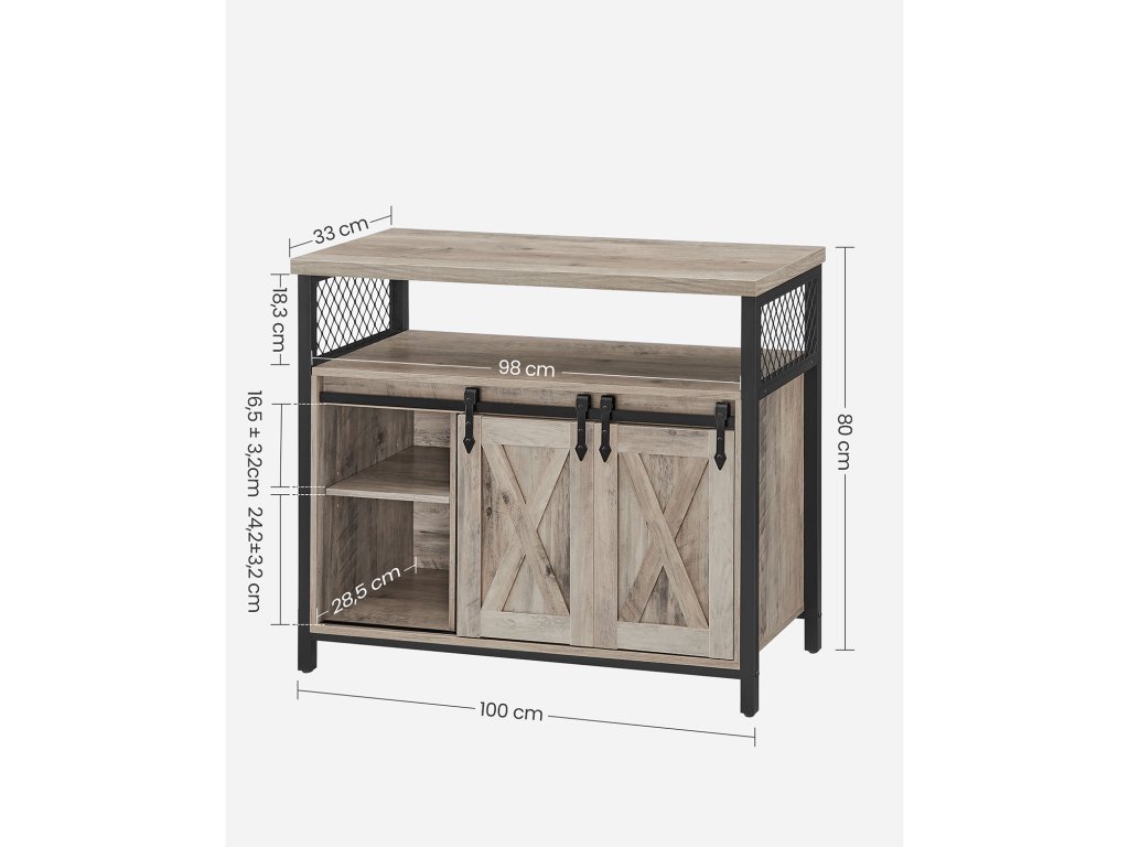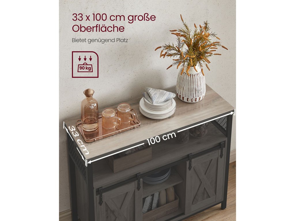 Příborník, kuchyňská linka, skříňka se 2 posuvnými dveřmi, 33 x 100 x 80 cm, nastavitelné police, venkovský styl, do obývacího pokoje, šedá.