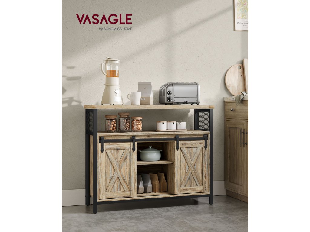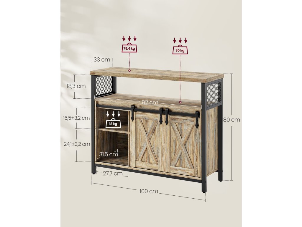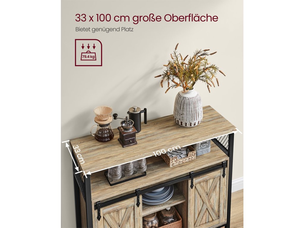 Příborník, kuchyňská skříňka, úložná skříňka, se 2 posuvnými dveřmi, 33 x 100 x 80 cm, nastavitelné police, do obývacího pokoje, tyrkysově hnědá a inkoustově černá.