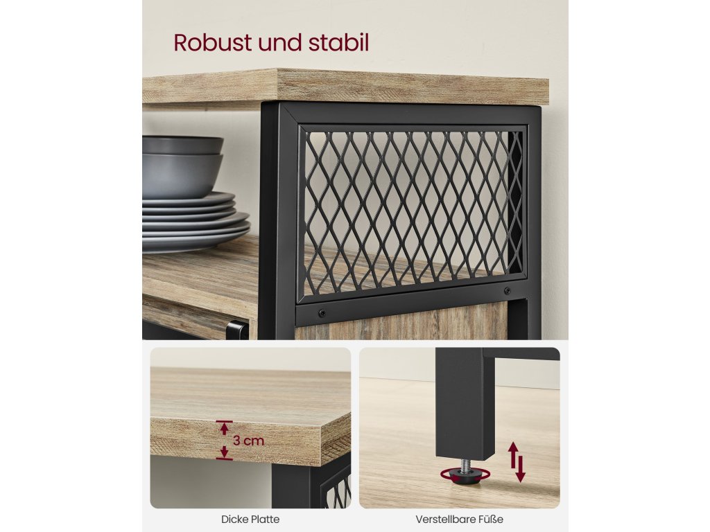 Posuvné dveře 2 symetricky uspořádané posuvné dveře propůjčují této kuchyňské skříňce elegantní styl, který lze začlenit do různých stylů interiéru.Flexibilní úložiště 6 přihrádek se 3 výškově nastavitelnými policemi pojme předměty různých velikostí. Deska stolu o rozměrech 13 "D x 39,4 "W nabízí další možnost ukládání.Robustní a stabilní Kombinace ocelového rámu a kvalitní dřevotřísky nabízí velkou stabilitu a pevnost. Nastavitelné nožičky udržují skříň v rovnováze a sada proti překlopení zajišťuje větší stabilitu.Jedna skříňka, mnoho využití Použijte ji jako vstupní skříňku na věci potřebné venku, jako stojan na televizi při filmovém maratonu nebo jako skříňku na dokumenty.Snadná montáž Číslované díly a přehledné pokyny vám pomohou snadno dokončit montáž této skříňky.| Kategorie: | Komody |