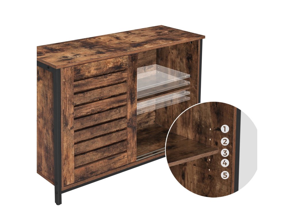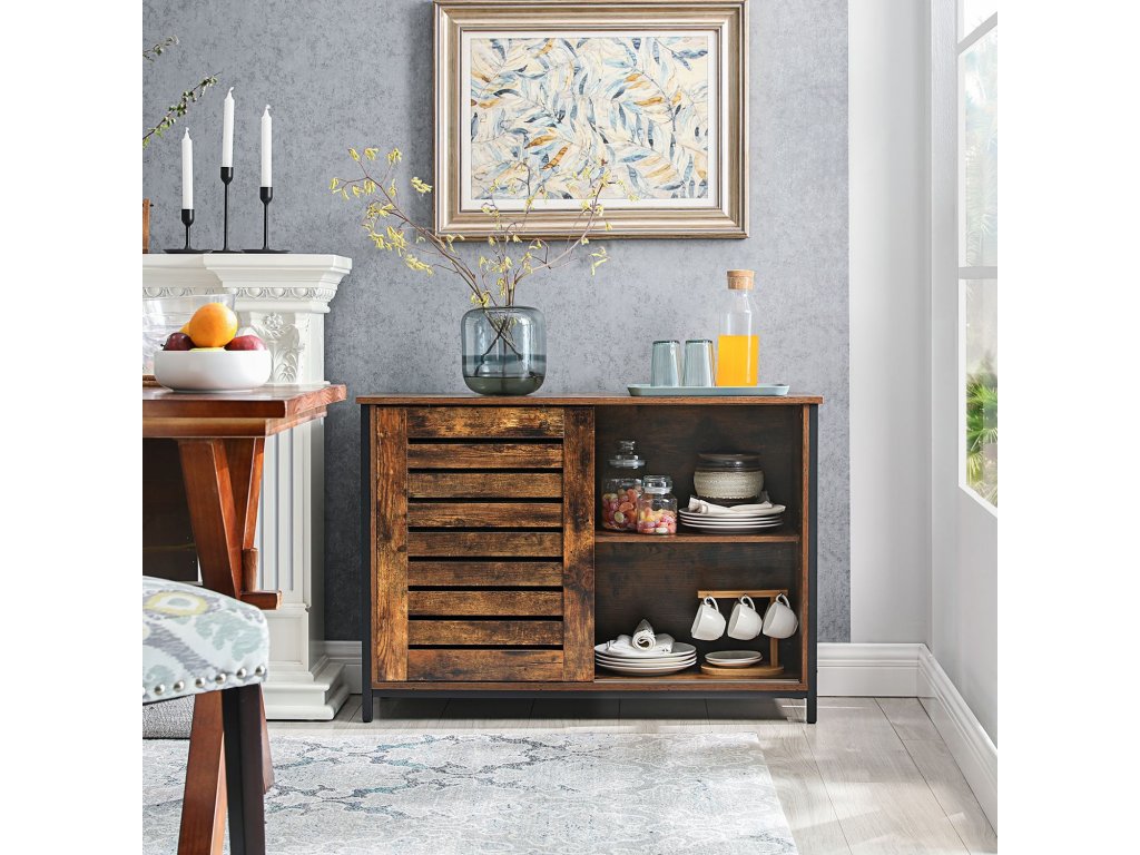 Příborník, kuchyňská skříňka s posuvnými dveřmi, komoda, obývací pokoj, předsíň, kuchyně, domácí kancelář, ocelový rám, industriální styl, rustikální hnědá a černá.