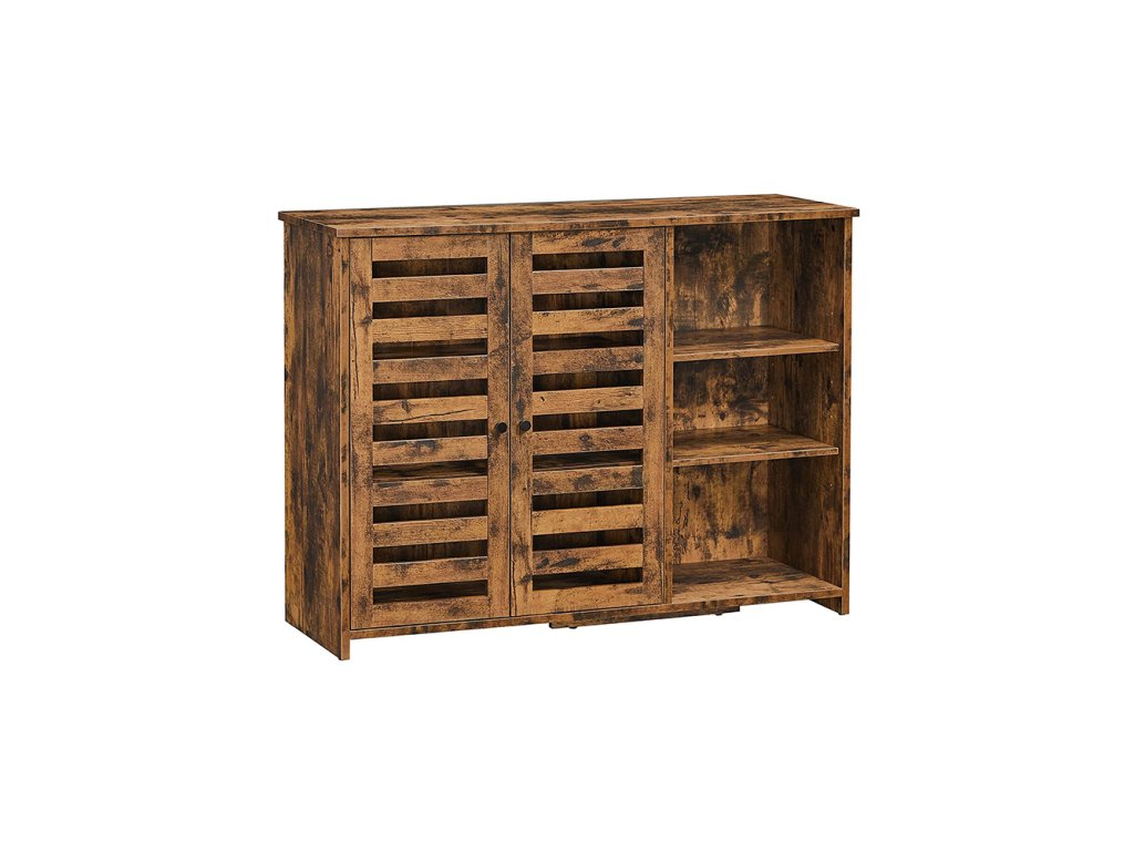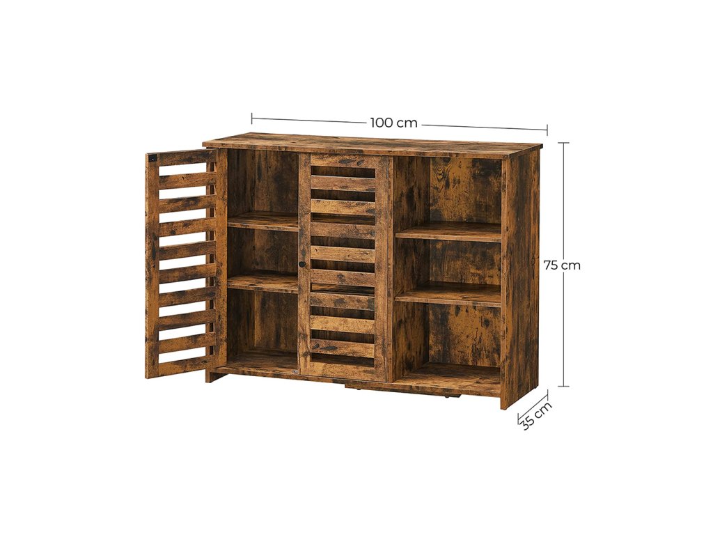 Příborník, kuchyňská skříňka se 2 lamelovými dveřmi, nastavitelná police, volně stojící 3 otevřené přihrádky, jídelna 110 x 35 x 75 cm, vintage, hnědý.