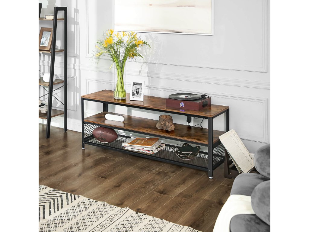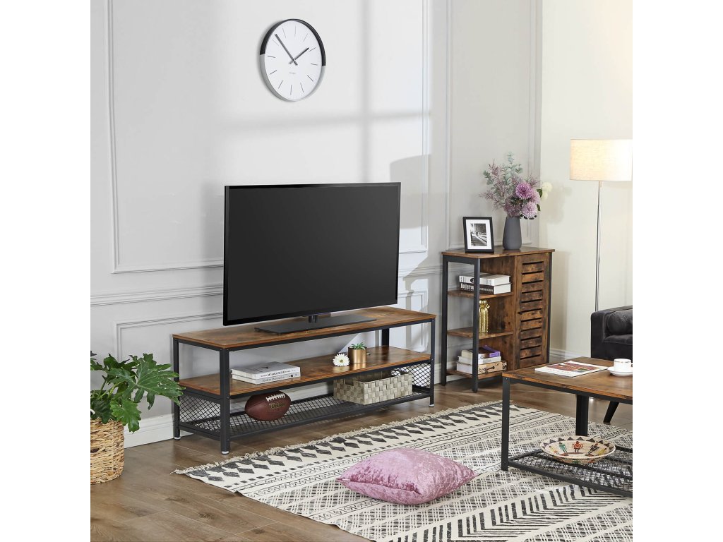 Průmyslový televizní stojan pro obrazovky do velikosti 60 palců, prodloužená skříňka na televizi, konzola, konferenční stolek s kovovým rámem, dřevo podobné zrnu, do obývacího pokoje, ložnice, rustikální hnědá.
