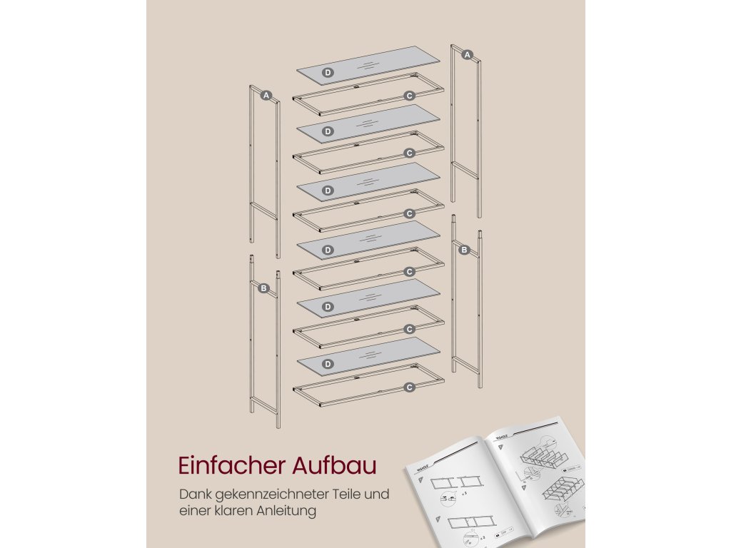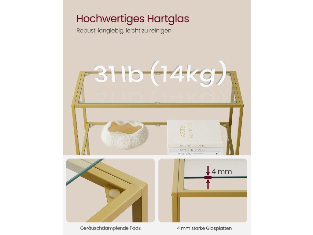 Vystavte si své oblíbené Tento šestipatrový úložný regál s průhlednými skleněnými policemi a rámem ve zlaté barvě se pyšní úžasným moderním minimalismem. Umožní vám vystavit zeleň, knihy a sběratelské předměty a zároveň pozvedne vzhled vašeho prostoru.6 úrovní pro maximální využití prostoru Tento šestipatrový regál s výškou 177,3 cm zabírá pouze 30 x 80 cm podlahové plochy a umožňuje plně využít vertikální prostor pro skladování.Snadná montáž Ilustrovaný návod a očíslované díly vám pomohou tuto skleněnou polici snadno sestavit.Všestranné Pro uspořádání dokumentů v kanceláři, vystavení fotografií v obývacím pokoji nebo uložení toaletních potřeb v koupelně. Každá police má nosnost 14 kg a bezpečně podepře vaše předměty.