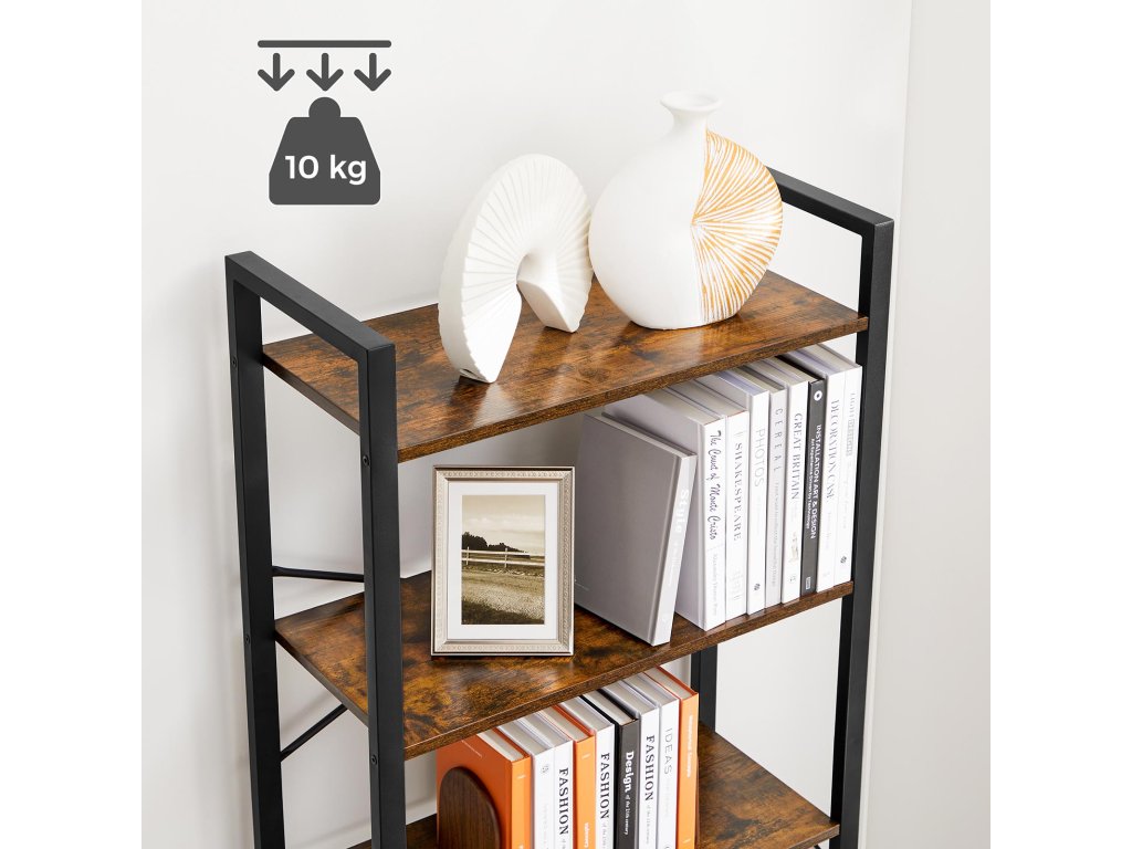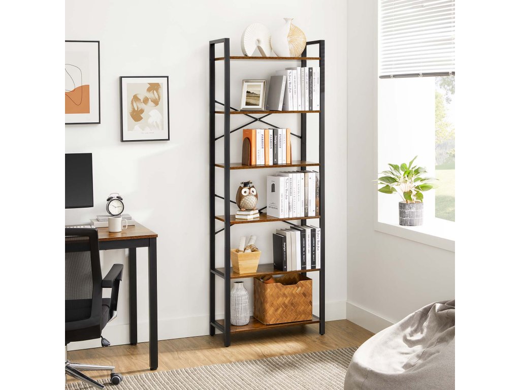 6 Všude police: Díky 6 otevřeným rustikálním hnědým policím můžete v této knihovně vystavit své oblíbené knihy, dekorace a rostliny v obývacím pokoji, ložnici, koupelně nebo na chodbě; stačí se rozhodnout, do které místnosti ji umístíte;Odolná konstrukce: Chytrá kombinace kvalitní dřevotřísky a robustního ocelového rámu zaručuje, že tento regál vydrží stejně dlouho jako rodinné památky, kterými ho ozdobíte. Každá police unese až 10 kg.Montáž není problém: Díky jasnému návodu a označeným dílům pro snadnější pochopení strávíte sestavováním této knihovny méně času než rozhodováním, kterou knihu začít číst!Na stabilitě záleží: Rozbila se vám dekorace, protože na ni skočila kočka a stojan se převrátil? Uvolněte se. Této šestipodlažní polici se to nestane, protože přiložená sada proti překlopení vám pomůže připevnit ji ke stěně pro větší stabilitu.Co získáte: Šestipatrový úložný regál o rozměrech 66 x 30 x 186 cm z kolekce ALINRU, průmyslové řešení pro ukládání a skvělý způsob, jak pozvednout váš nábytek na vyšší úroveň.| Kategorie: | Knihovny |