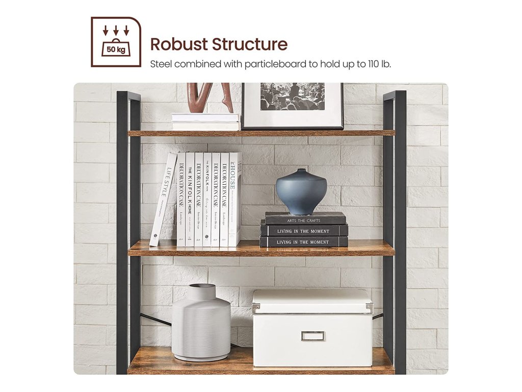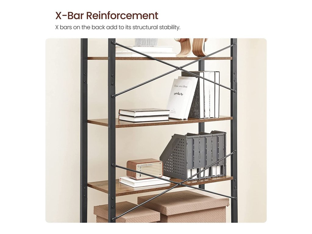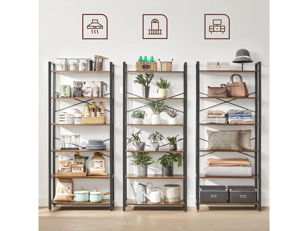 6 Všude police: Díky 6 otevřeným rustikálním hnědým policím můžete v této knihovně vystavit své oblíbené knihy, dekorace a rostliny v obývacím pokoji, ložnici, koupelně nebo na chodbě; stačí se rozhodnout, do které místnosti ji umístíte;Odolná konstrukce: Chytrá kombinace kvalitní dřevotřísky a robustního ocelového rámu zaručuje, že tento regál vydrží stejně dlouho jako rodinné památky, kterými ho ozdobíte. Každá police unese až 10 kg.Montáž není problém: Díky jasnému návodu a označeným dílům pro snadnější pochopení strávíte sestavováním této knihovny méně času než rozhodováním, kterou knihu začít číst!Na stabilitě záleží: Rozbila se vám dekorace, protože na ni skočila kočka a stojan se převrátil? Uvolněte se. Této šestipodlažní polici se to nestane, protože přiložená sada proti překlopení vám pomůže připevnit ji ke stěně pro větší stabilitu.Co získáte: Šestipodlažní úložný regál o rozměrech 80 x 30 x 186 cm z kolekce ALINRU, průmyslové řešení úložného prostoru a skvělý způsob, jak pozvednout váš nábytek na vyšší úroveň.| Kategorie: | Knihovny |