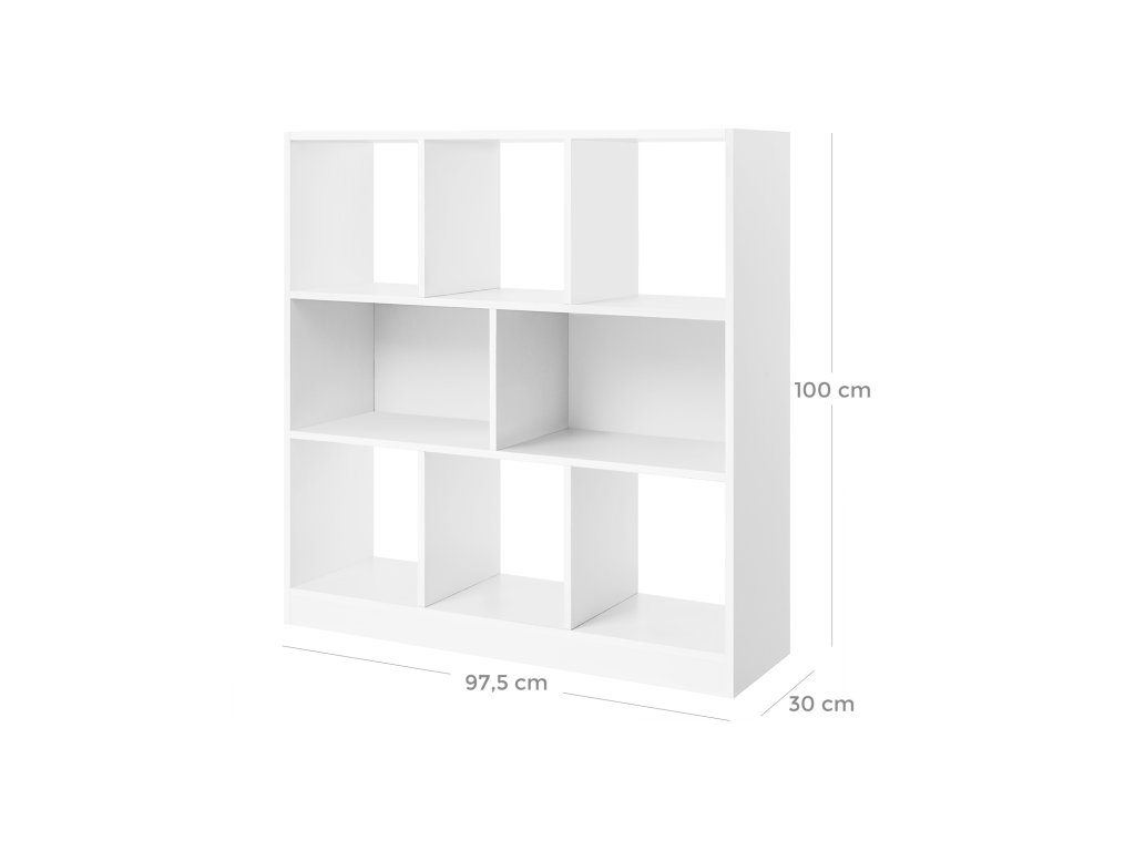 Vylepšete svůj prostor: Tato moderní knihovna v bílém provedení nabízí správnou kombinaci stylu a efektivity, aby vaše sbírka knih byla vždy po ruce.Prostorné a praktické: 97,5 x 30 x 100 cm (d x š x v), regály mají uzavřené police a otevřené boxy, které můžete různě zaplnit knihami, suvenýry a dekoracemi a mít k nim snadný přístup.Více zabezpečené: Dodává se se sadou proti převrácení, která stabilizuje a ukotvuje volně stojící poličku pro organizování souborů pro zajištění bezpečnosti; každá přihrádka unese až 10 kg; 6 cm vysoká lišta zvyšuje stabilitu konstrukce.Snadná montáž: Tato skladovací jednotka se dodává s označenými díly a ilustrovanými pokyny.Všestranný kousek: Stačí přidat úložné boxy nebo dekorace, abyste získali kompletní vzhled.| Kategorie: | Knihovny |