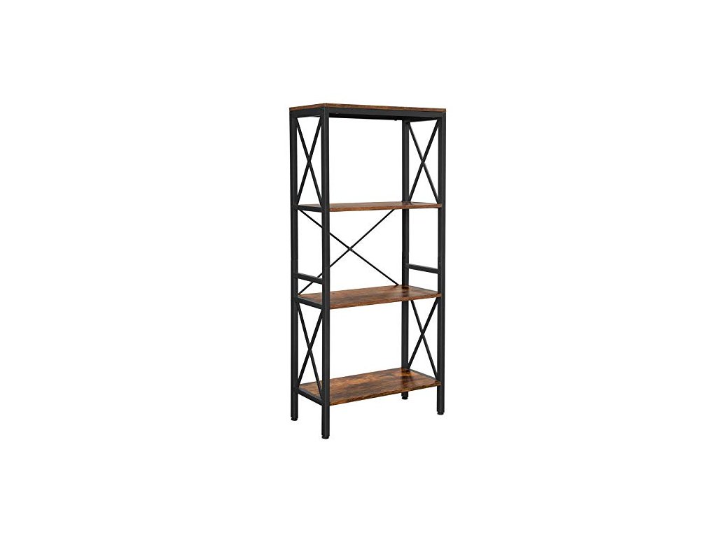 Regál na knihy, kuchyňský regál, volně stojící regál, žebříkový regál se 4 otevřenými policemi, do chodby, kuchyně, kanceláře, stabilní ocelový rám, průmyslový styl, rustikální hnědá a černá.