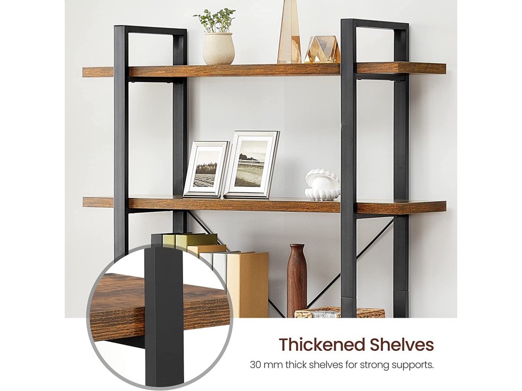 PŘÍJEMNOU ATMOSFÉRU: Rám z černé oceli se setkává s dřevotřískovými deskami v rustikálním stylu. K útulné pohovce a lampě, která zahalí váš domov do hřejivého světla, můžete přidat mnoho dobrých knih a bez větší námahy vytvořit dokonalou atmosféru pro čtení.ZAPOMEŇTE NA ČTEČKU E-BOOKŮ: Fyzické knihy nejsou tak moderní jako digitální verze, ale přejíždět prsty po papíře má své kouzlo. Na pěti 105 cm dlouhých policích tohoto regálu lze snadno uložit i velké sbírky knih.SMÍŠENÉ DVOJÍ: Robustní kombinace robustní oceli a odolné dřevotřísky dodává knihovně vysokou stabilitu. Každou polici můžete zatížit předměty o hmotnosti až 30 kg.ULEHČENÁ MONTÁŽ: Přestože je úložný regál o rozměrech 105 x 33,5 x 177,5 cm (D x Š x V) obrovský, lze jej díky zvládnutelnému počtu jednotlivých dílů snadno sestavit během 20 minut.CO ZÍSKÁTE: Knihovna s 5 policemi, nastavitelnými nožičkami a sadou proti překlopení pro větší stabilitu. Tak si dopřejte tento stylový kus nábytku a vystavte si své oblíbené knihy!| Kategorie: | Knihovny |