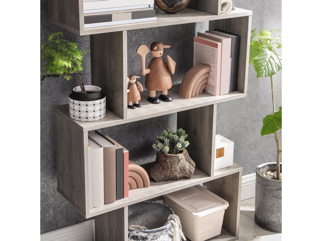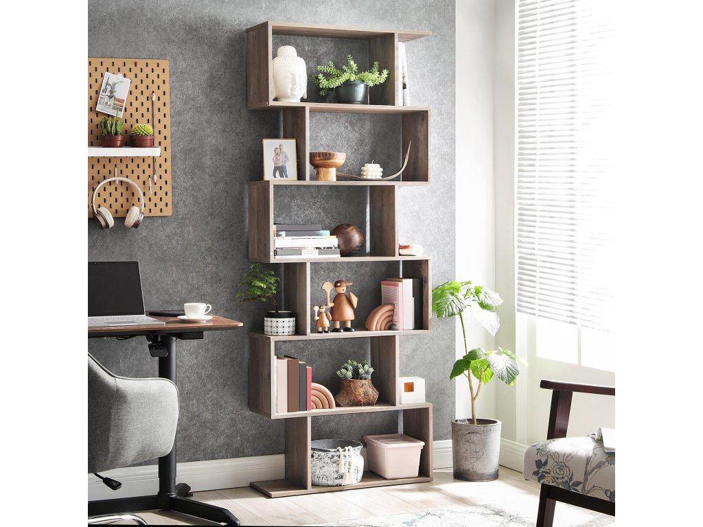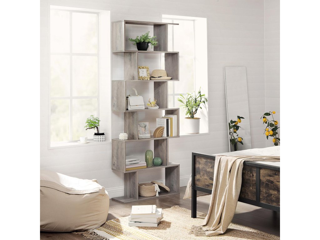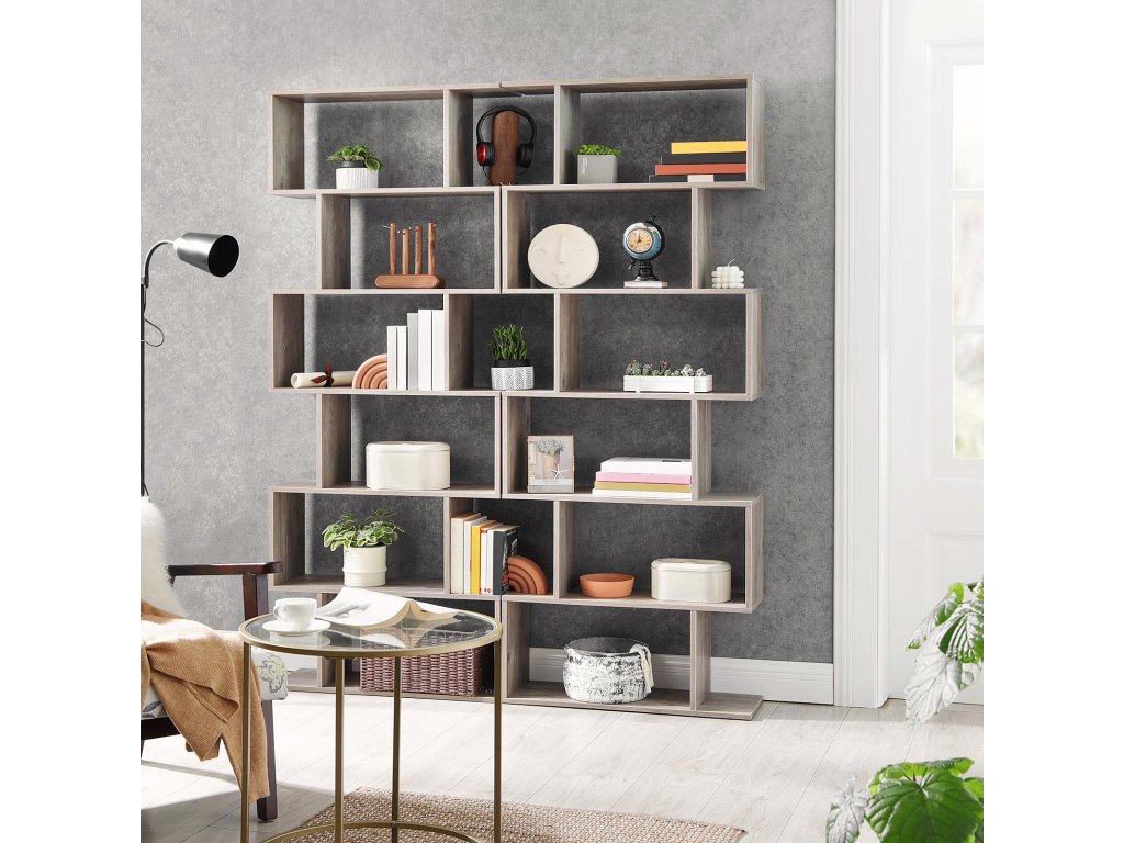 Regály na knihy, 6patrová knihovna, rozdělovač místností, kostkový regál, volně stojící úložný regál, moderní styl, do obývacího pokoje, ložnice, kanceláře, béžová.