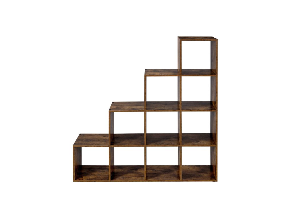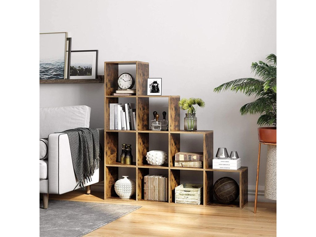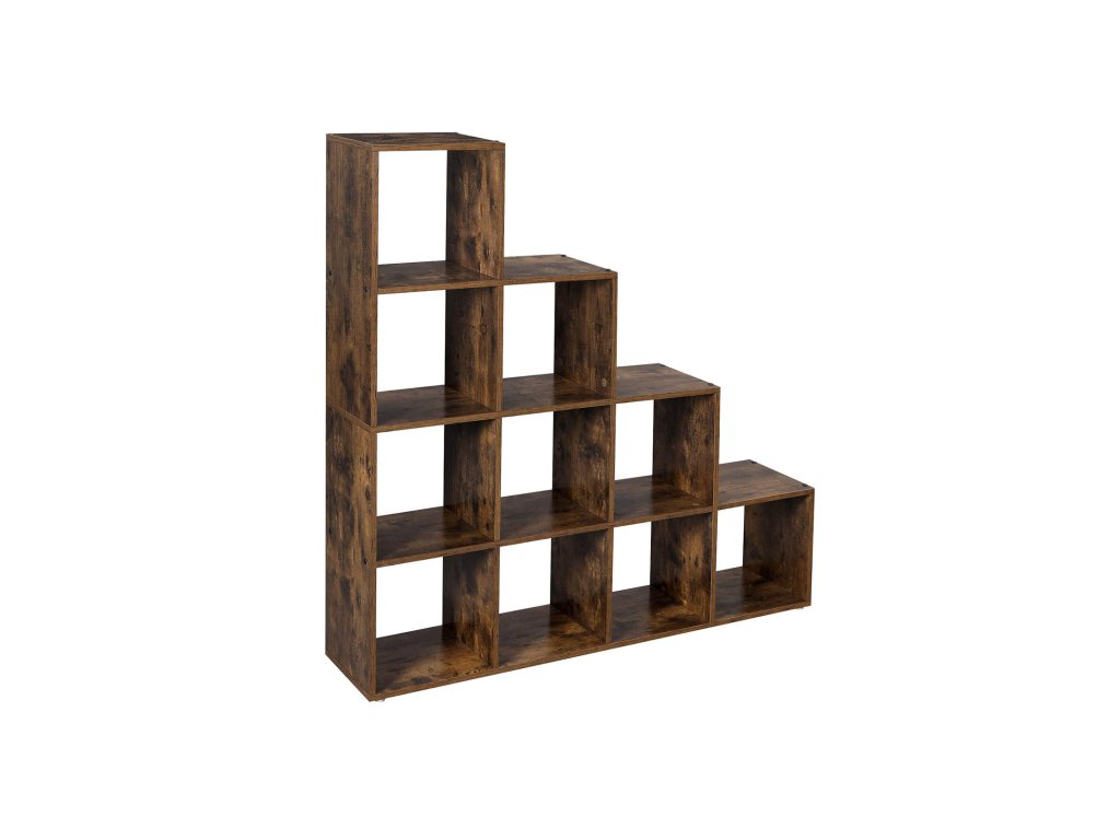 Regály na knihy, knihovna s 10 kostkami, rozdělovač místností, volně stojící regál s 10 přihrádkami, 129,5 x 29 x 129,5 cm, do obývacího pokoje, ložnice, pracovny, rustikální hnědá.