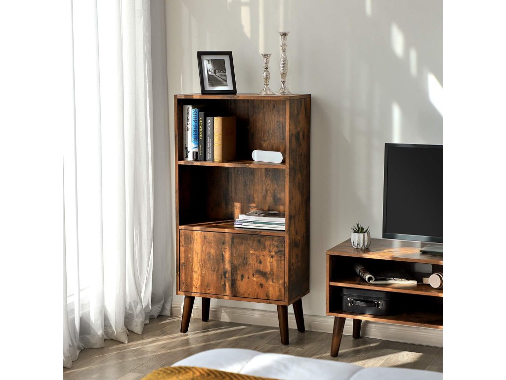 Vraťte dobrý styl: Nedovolte, aby byl dobře vypadající nábytek minulostí: Objevte svůj domov s okouzlující knihovnou z poloviny století od společnosti VASAGLE; tato skříňka inspirovaná retro stylem se bude skvěle vyjímat v eklektických místnostech, které potřebují další úložný prostor;Skladujte, co potřebujete: Tato knihovna obsahuje 2 vysoké police a úložnou skříňku, do které můžete uložit své oblíbené knihy, hry a dekorace; Jednoduché otevírání dveří stisknutím tlačítka vám umožní rozloučit se se zbytečnými klikami a snadno si vzít své věci!;Kvalita není ztracena: Šikmé nohy tohoto regálu jsou z masivního kaučukového dřeva, které je pro větší stabilitu podepřeno šrouby i dřevěnými kolíky; díky odolnému rámu z umělého dřeva unese tato skříňka až 50 kg;Bezpečnost pro vás a váš domov: Chceme pro vás a váš domov jen to nejlepší; součástí dodávky jsou i spodní podložky pod nohy, aby nedošlo k poškrábání podlahy, a také kování proti převrácení, aby se knihovna náhodou nepřevrátila;| Kategorie: | Regály a poličky |