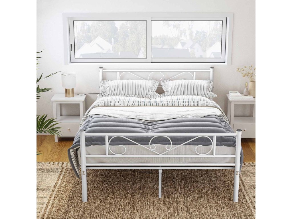 Rám manželské postele Kovový rám postele vhodný pro matrace 140 x 190 cm, postel pro hosty, dospělí, děti, snadná montáž, malé prostory, bílý.