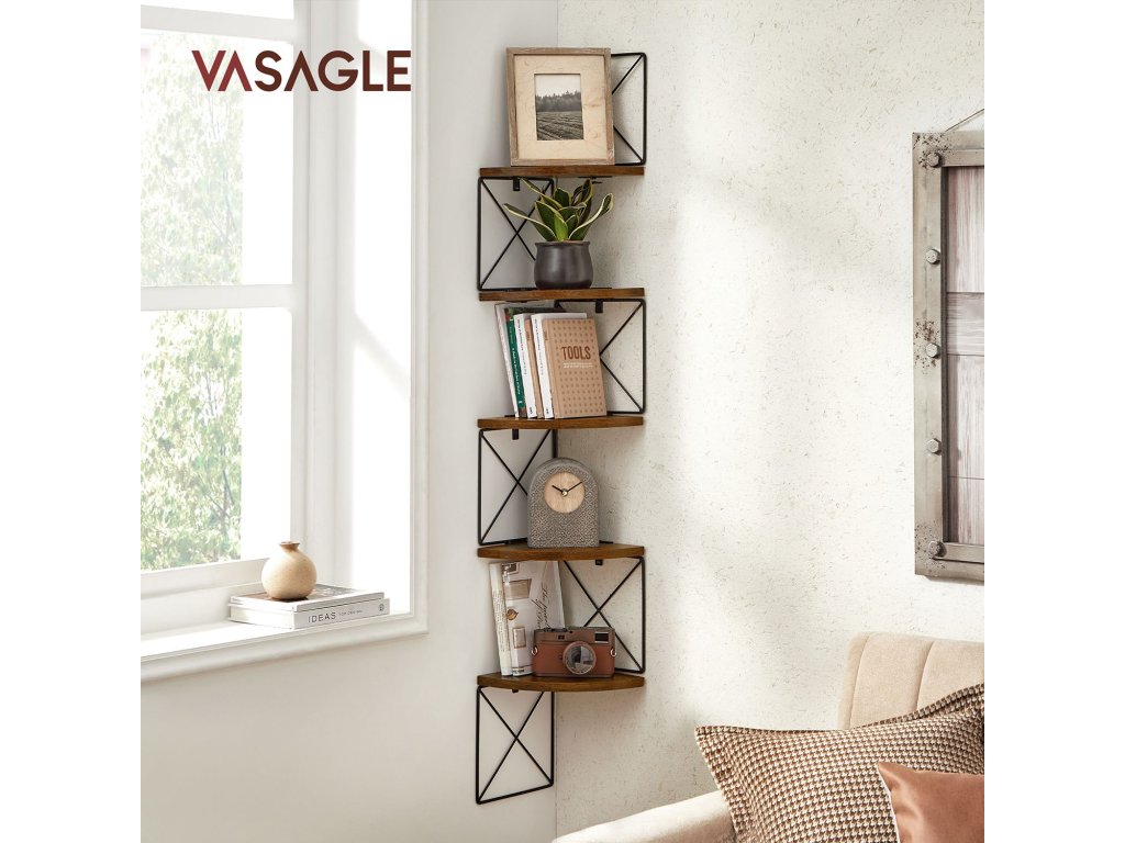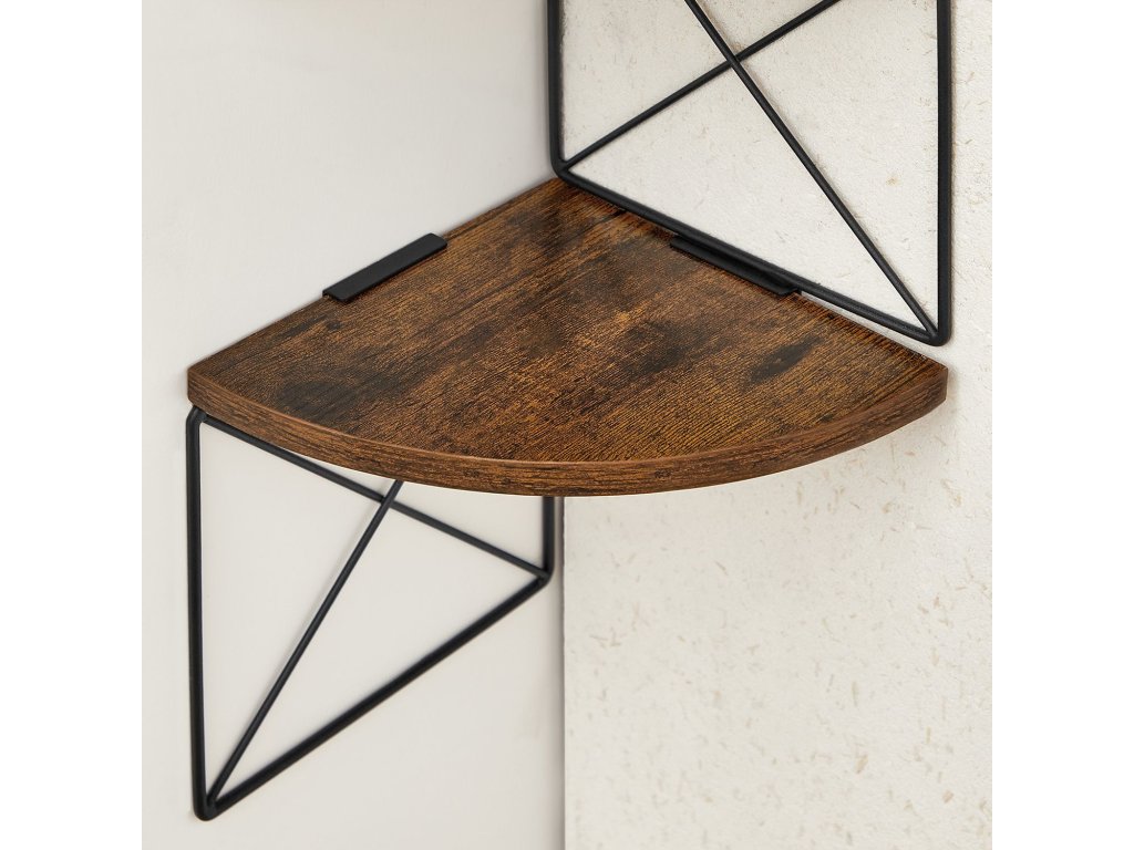 Rohová police na stěnu, plovoucí police 5 úrovní, police na knihy, do ložnice obývacího pokoje koupelny kuchyně kanceláře, snadná montáž, industriální, rustikální hnědá a černá.