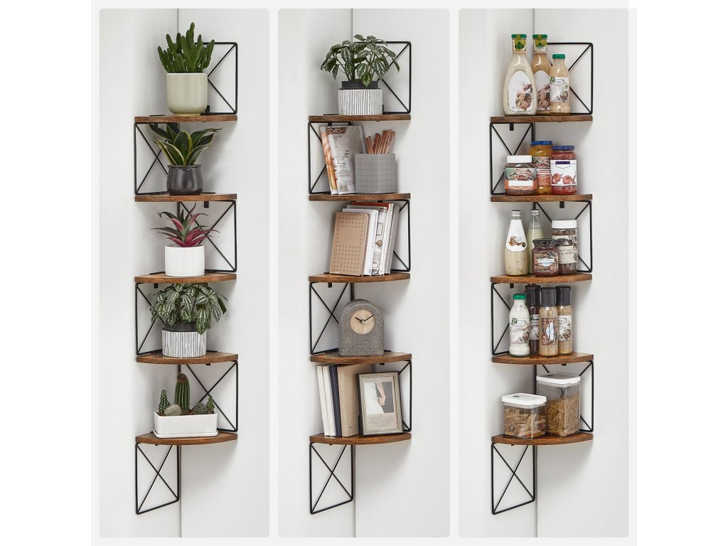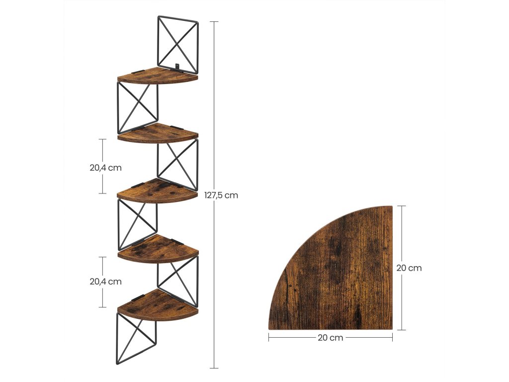Prostor? 5 polic! S poloměrem 20 cm a vzdáleností 20 cm mezi policemi vám tato rohová police poskytne dostatek prostoru pro vystavení dekorací a uložení často používaných předmětů po ruce.