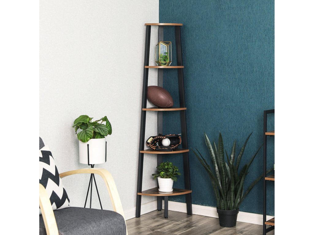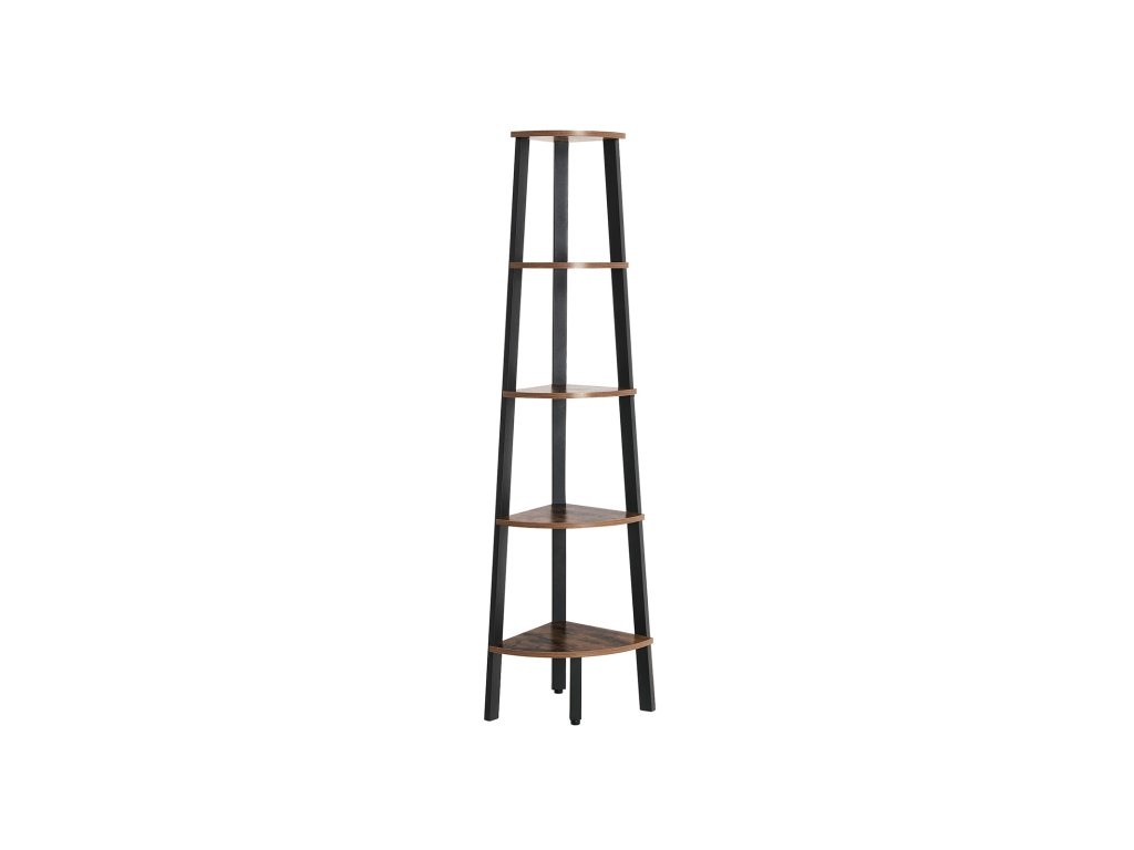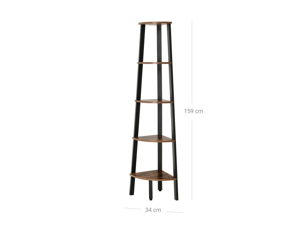Rohový regál, pětistupňový průmyslový žebřík, úložný regál, s kovovým rámem, do obývacího pokoje, domácnosti, kanceláře, rustikální hnědá.